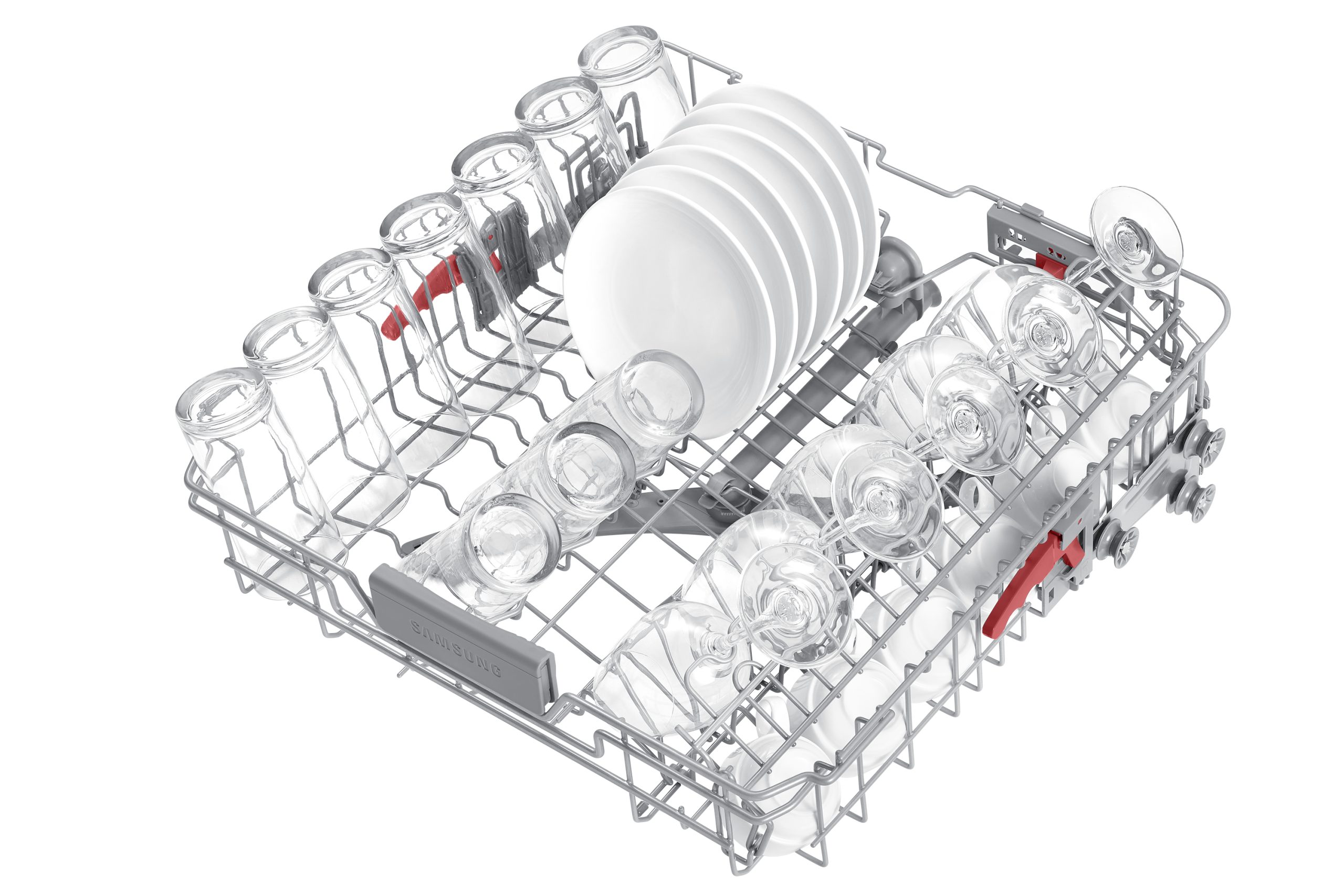 Sistema piatti, tazze e bicchieri in modo più facile e sicuro. I piedini del cestello intermedio possono essere regolati su 3 diverse angolazioni utilizzando unapposita leva, mentre quelli del cestello inferiore si piegano per fare posto a stoviglie di grandi dimensioni. E con lapposito Porta-bicchieri anche gli oggetti più delicati, come i calici, saranno al sicuro.