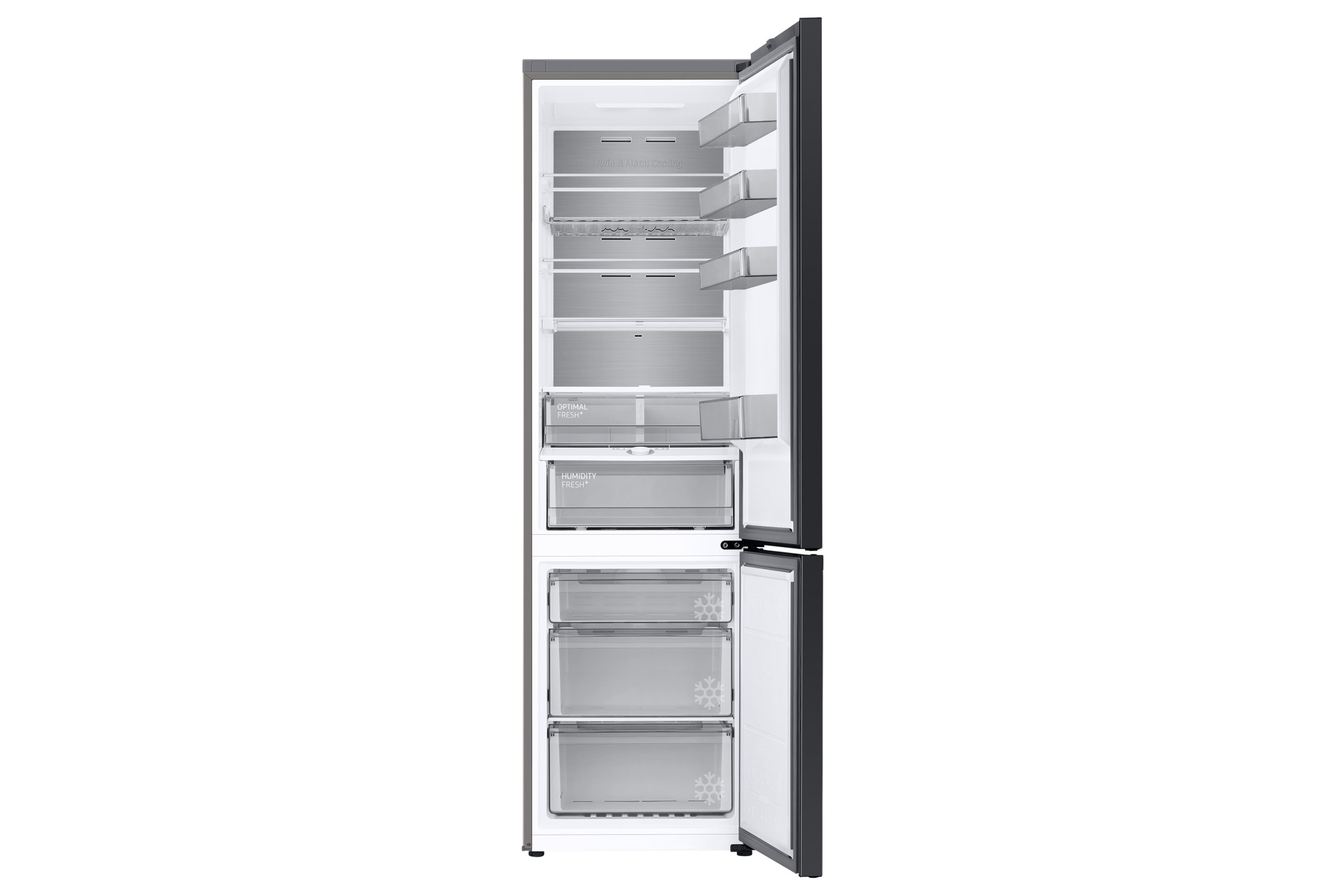Il comparto Optimal Fresh + può essere utilizzato come cassetto unico o diviso in due zone con temperature diverse. Il lato sinistro è più freddo, per cui carne e pesce possono durare due volte più a lungo[9]. Il lato destro è ideale per preservare la freschezza di frutta e verdura.