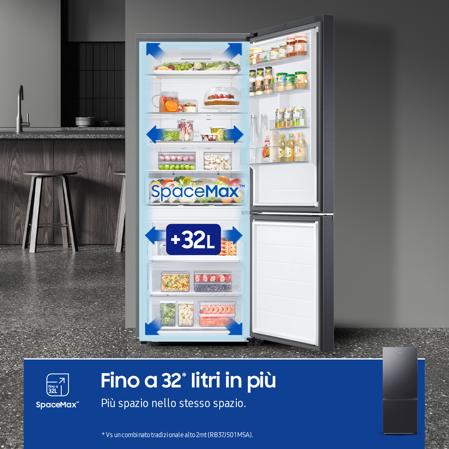 | Tecnologie Samsung (conservazione alimenti) | Raffreddamento completo, Digital Inverter Compressor, SpaceMax™ Technology, Total No Frost |