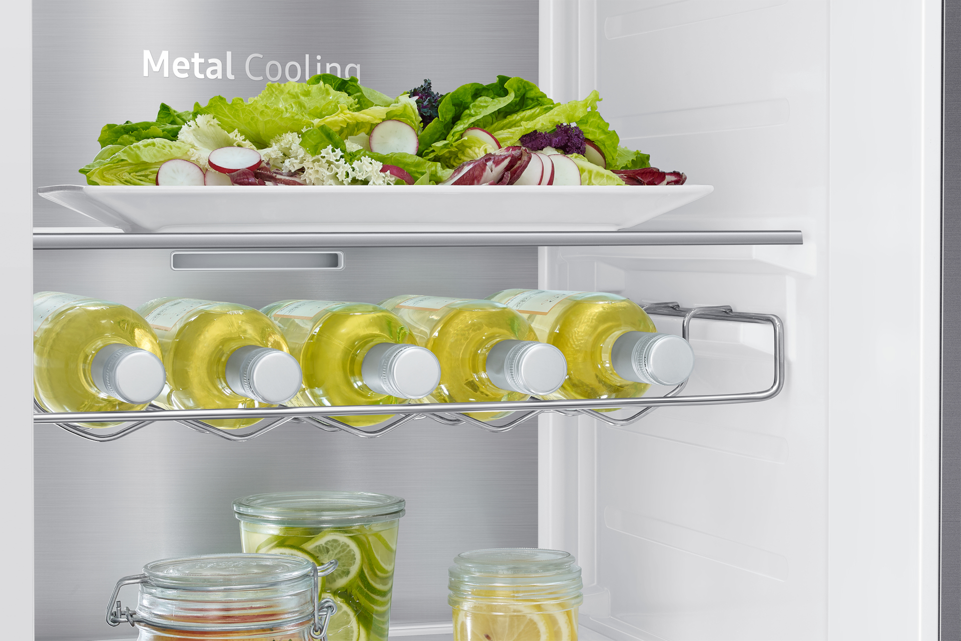 Mantieni la temperatura interna ottimale, per preservare la freschezza dei cibi anche se la porta viene aperta di frequente. Il condotto Metal Cooling posizionato nella parete di fondo trattiene il freddo e compensa subito eventuali perdite di calore. Inoltre, aggiunge una nota di eleganza ed è facilissimo da pulire.