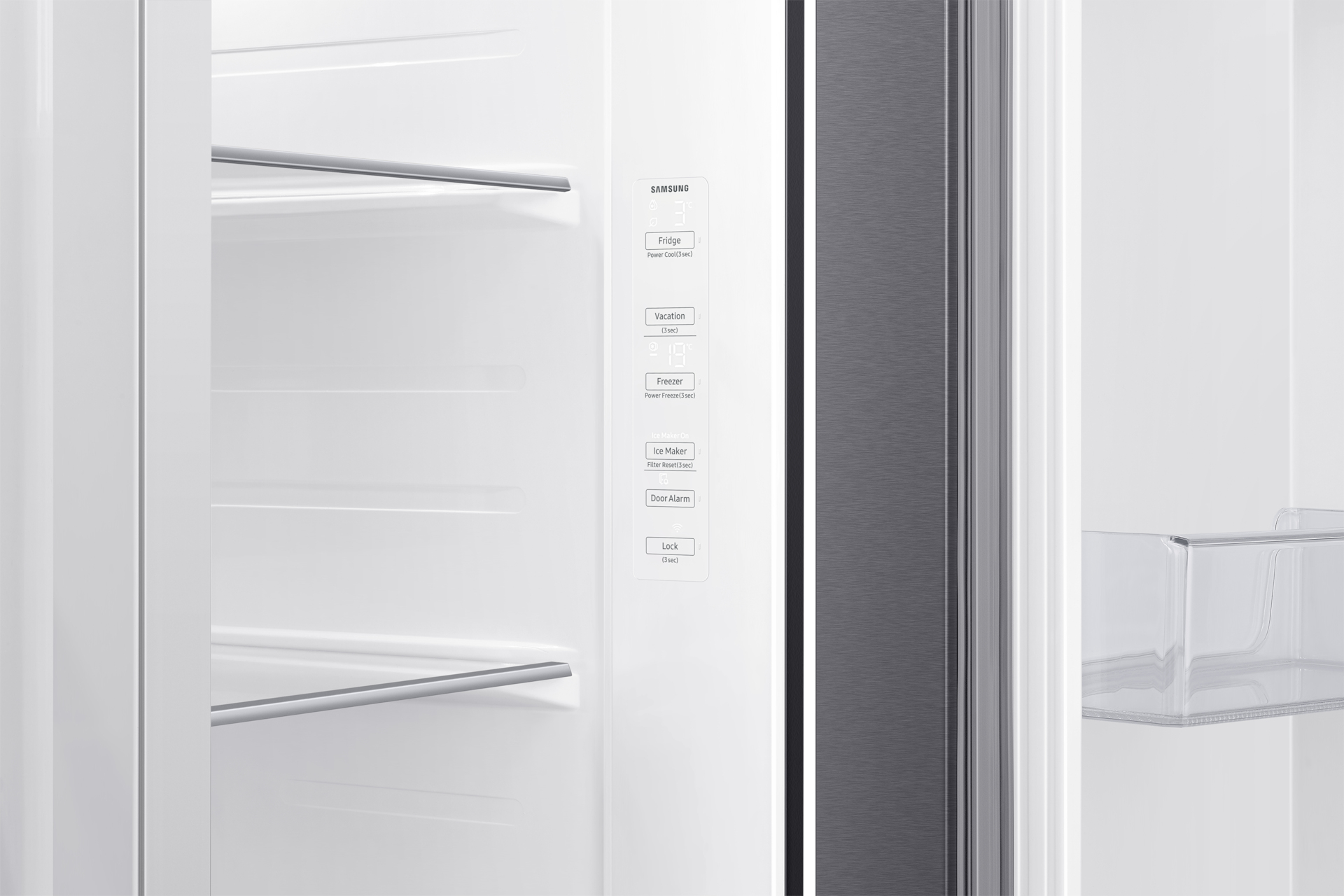 Libera spazio per conservare gli alimenti, senza rimanere a corto di ghiaccio con una macchina del ghiaccio integrata nella porta. La sua posizione consente di avere spazio extra nel freezer, senza influire sulla quantità di ghiaccio prodotta. E il rivestimento in plastica trasparente permette di vedere quanto ne è rimasto.