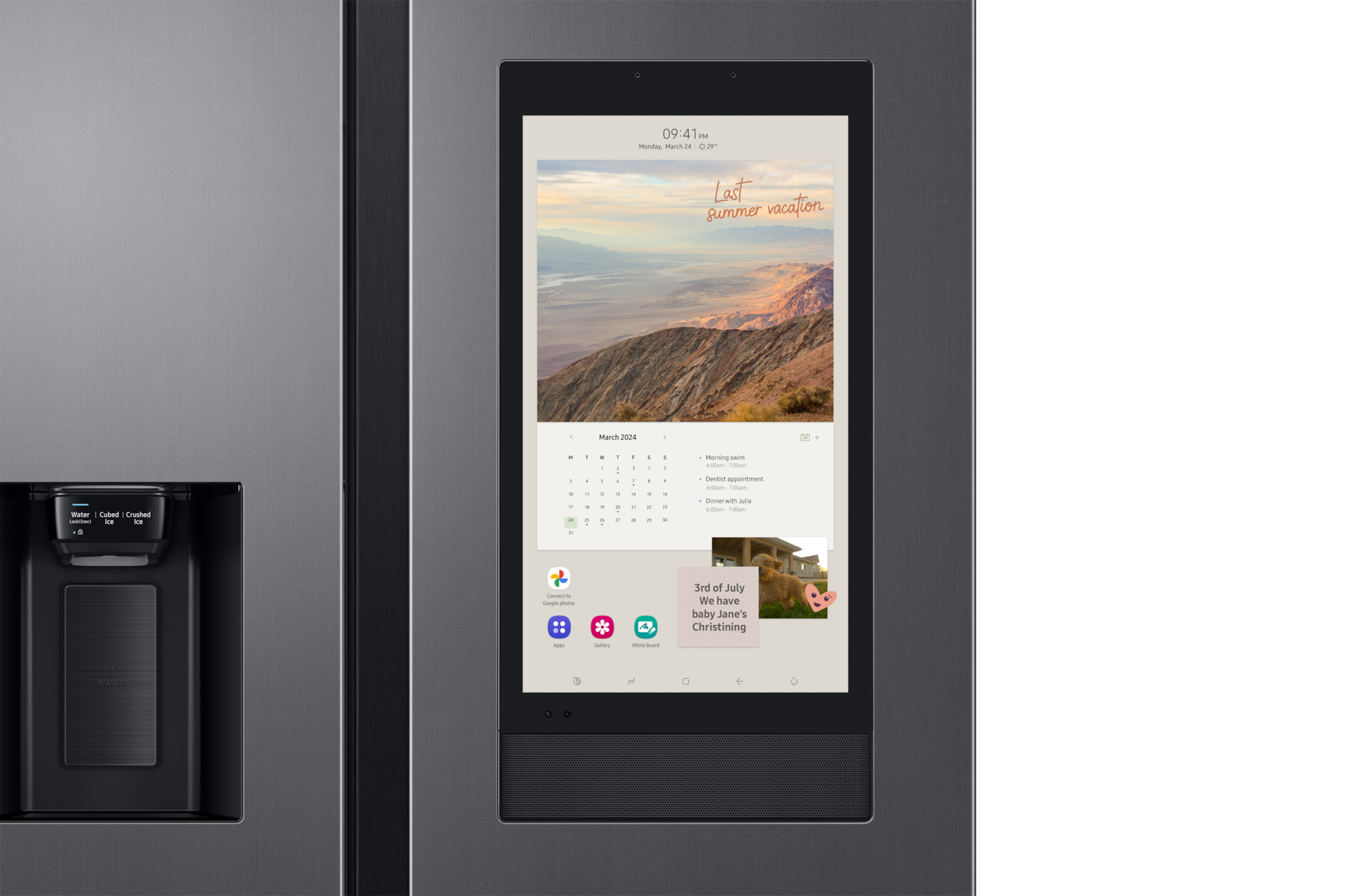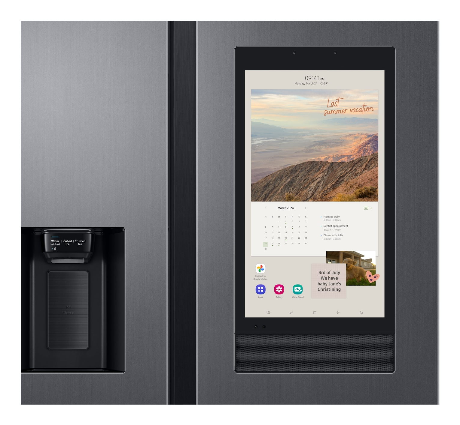 Scopri un nuovo modo di stare insieme e condividere attività con la tua famiglia. Con il Family Hub potrai condividere direttamente informazioni e promemoria in modo semplice e immediato. Lascia messaggi o promemoria, compila elenchi di cose da fare, istruzioni e orari, sincronizza i calendari di tutti oppure pubblica foto, che potrai scaricare o caricare su Google Foto[13].