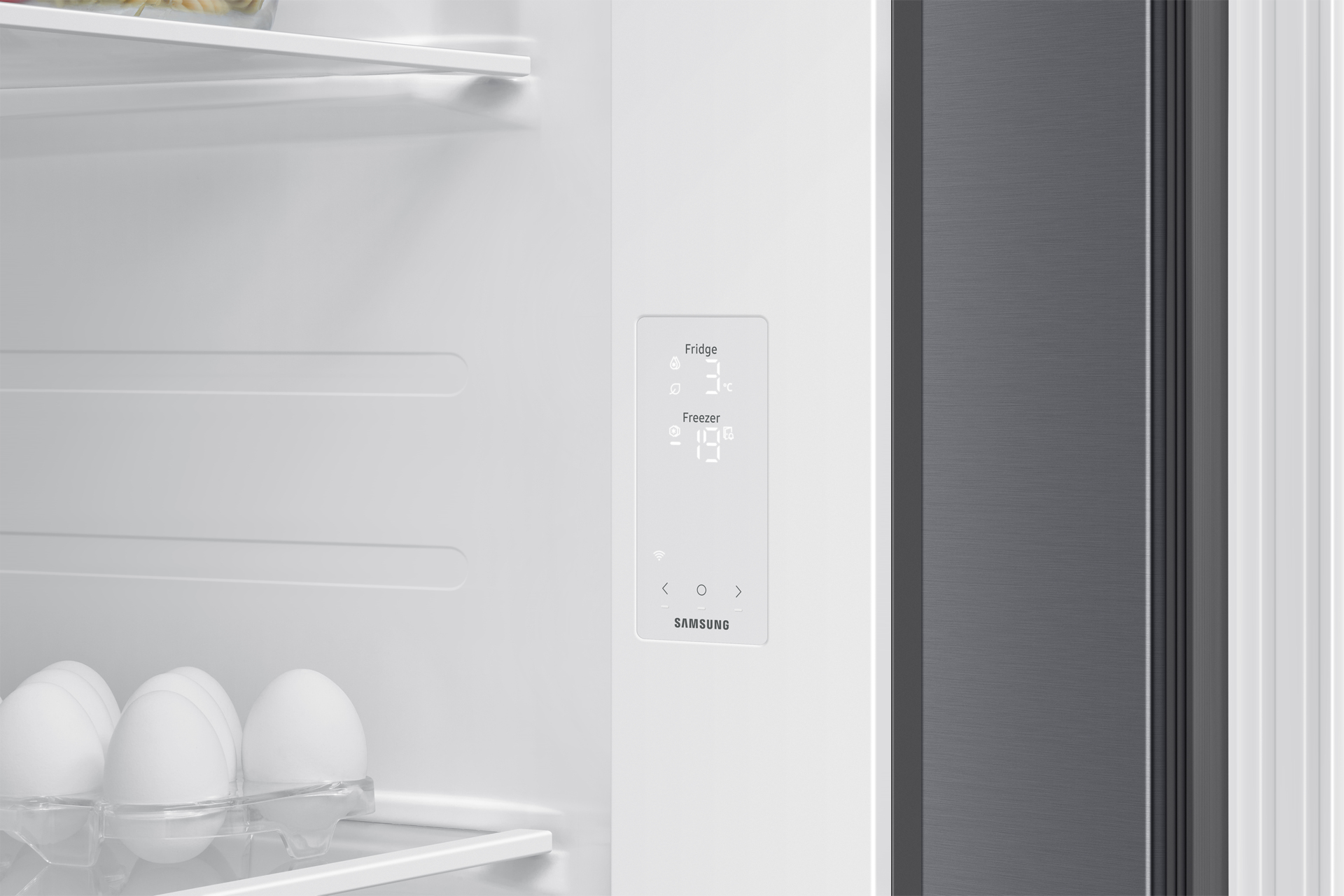 Da oggi non perderai mai più di vista il tuo frigorifero. Grazie al Wi-Fi integrato potrai monitorare e regolare le sue prestazioni utilizzando l’app SmartThings[1]. Potrai tenere docchio la modalità di raffreddamento, modificare la temperatura e ricevere notifiche se hai lasciato lo sportello aperto. Inoltre, il sistema ti aiuterà a identificare eventuali problemi.