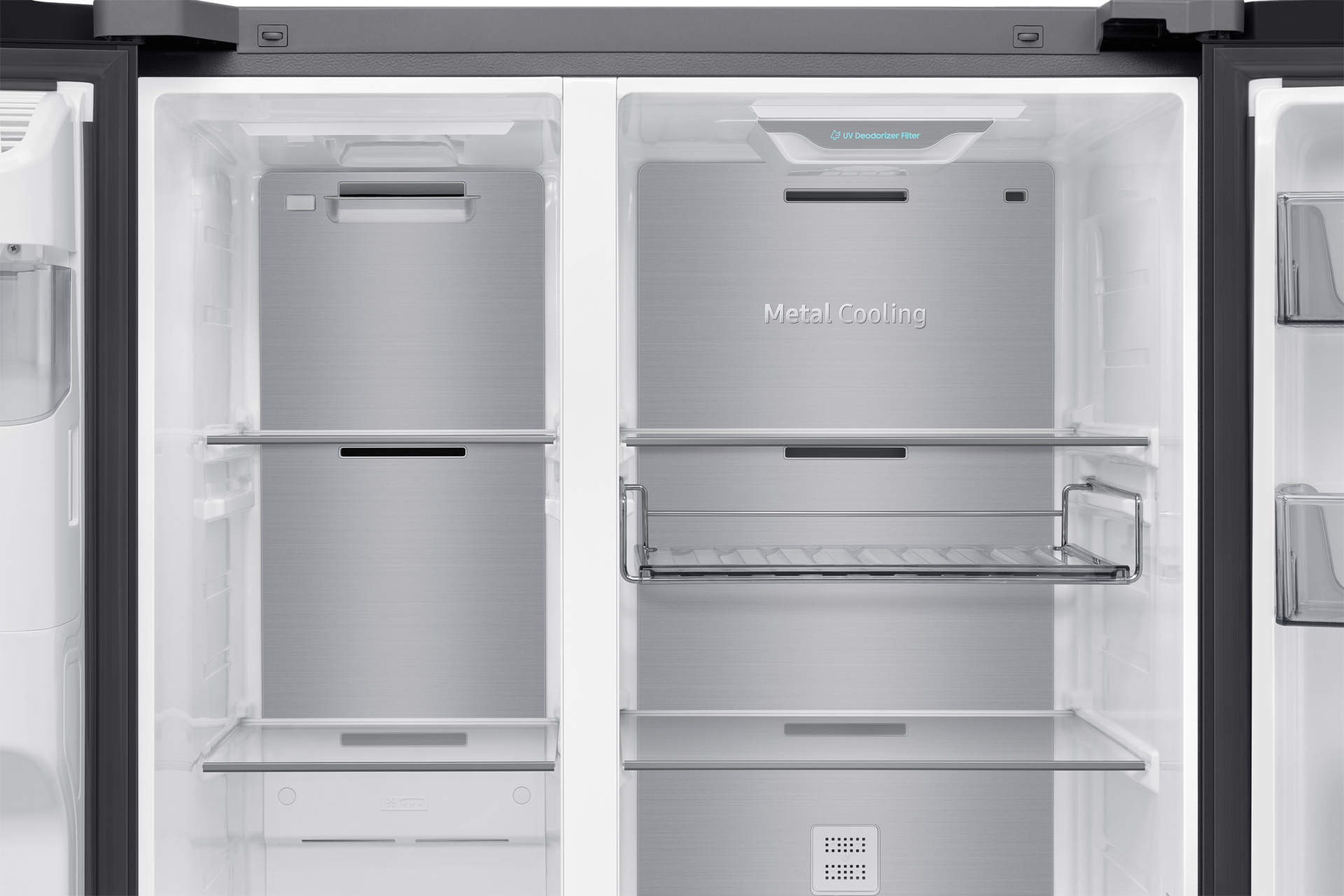 Preserva la freschezza dei cibi anche se la porta viene aperta di frequente. Il condotto Metal Cooling posizionato nella parete di fondo permette di mantenere una temperatura interna ottimale. Trattiene il freddo e impedisce la dispersione di aria fredda quando si apre la porta, compensando rapidamente ogni perdita di calore quando la si richiude.