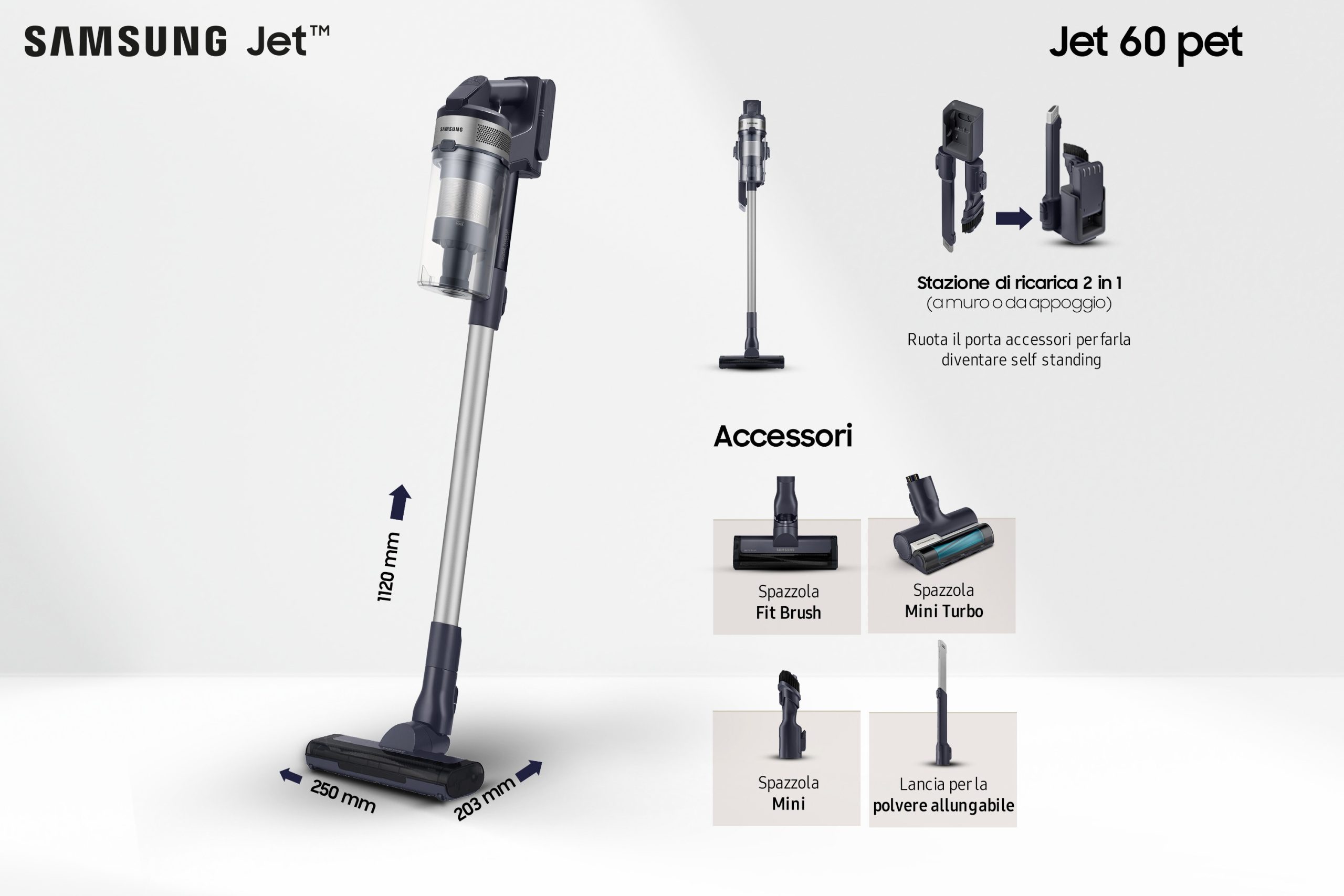 Grazie al supporto di ricarica 2 in 1, puoi riporre la tua scopa elettrica e allo stesso tempo ricaricarne la batteria. Il supporto si adatta facilmente a qualsiasi spazio e per ridurre al minimo l’ingombro può essere montato a parete. Oppure puoi utilizzarlo come caricatore autonomo per caricare la batteria del tuo aspirapolvere ovunque si trovi.