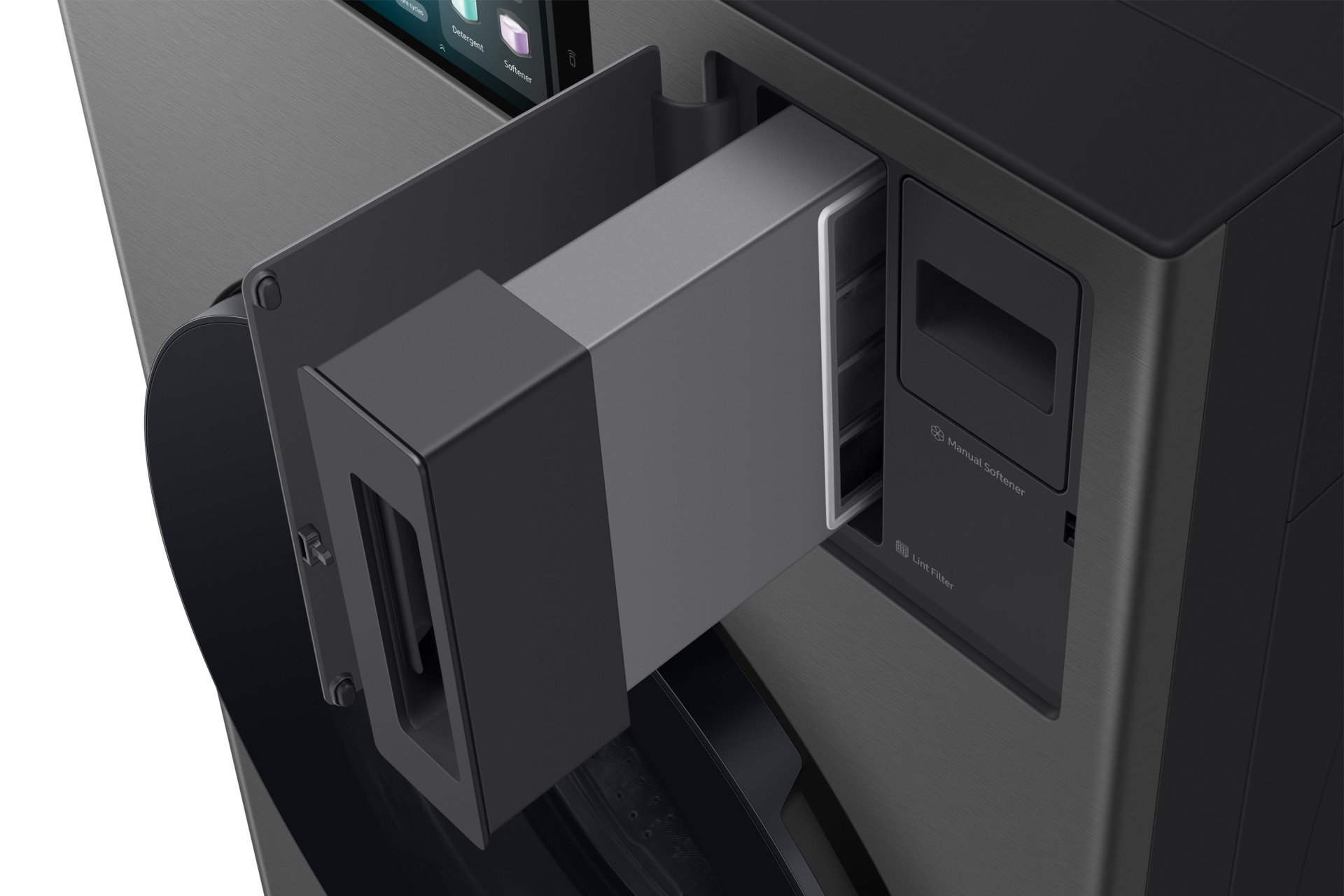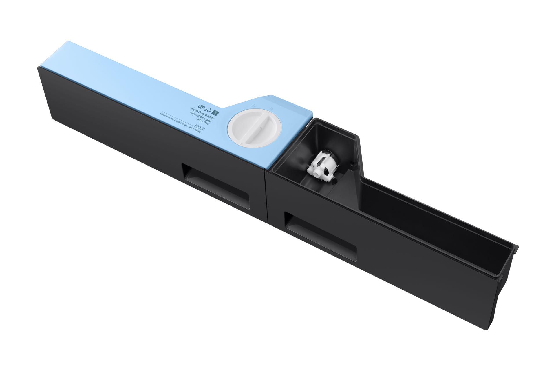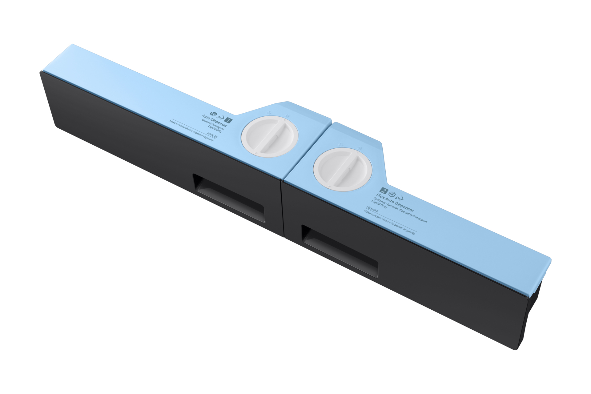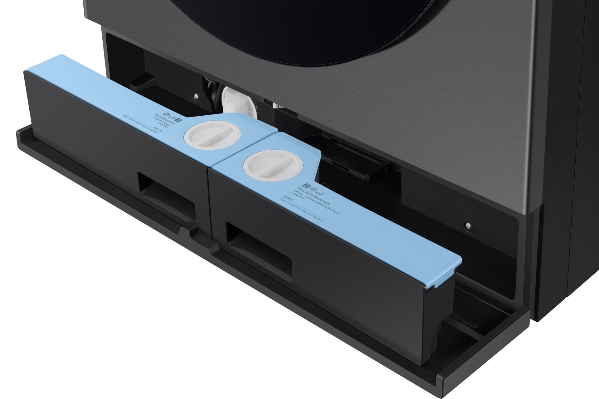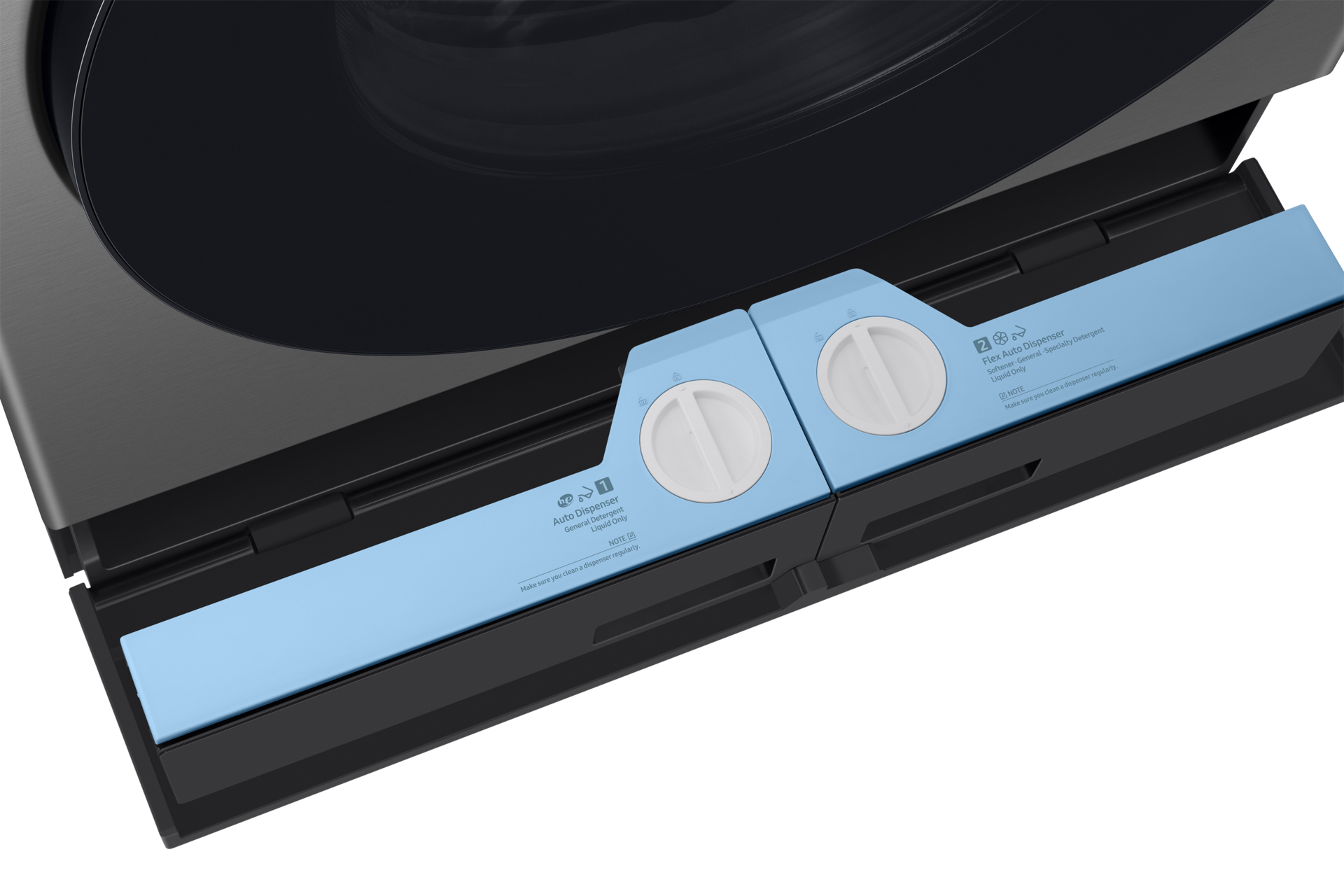 Il dispenser eroga automaticamente la quantità di detersivo e ammorbidente più indicata per ogni carico. Può contenere detersivo e ammorbidente per un massimo di 25 cicli, oppure fino a 47 cicli se si utilizza solo il detersivo[2]. Inoltre, con il sistema Flex si possono caricare due tipi diversi di detergente e scegliere volta per volta quale utilizzare.