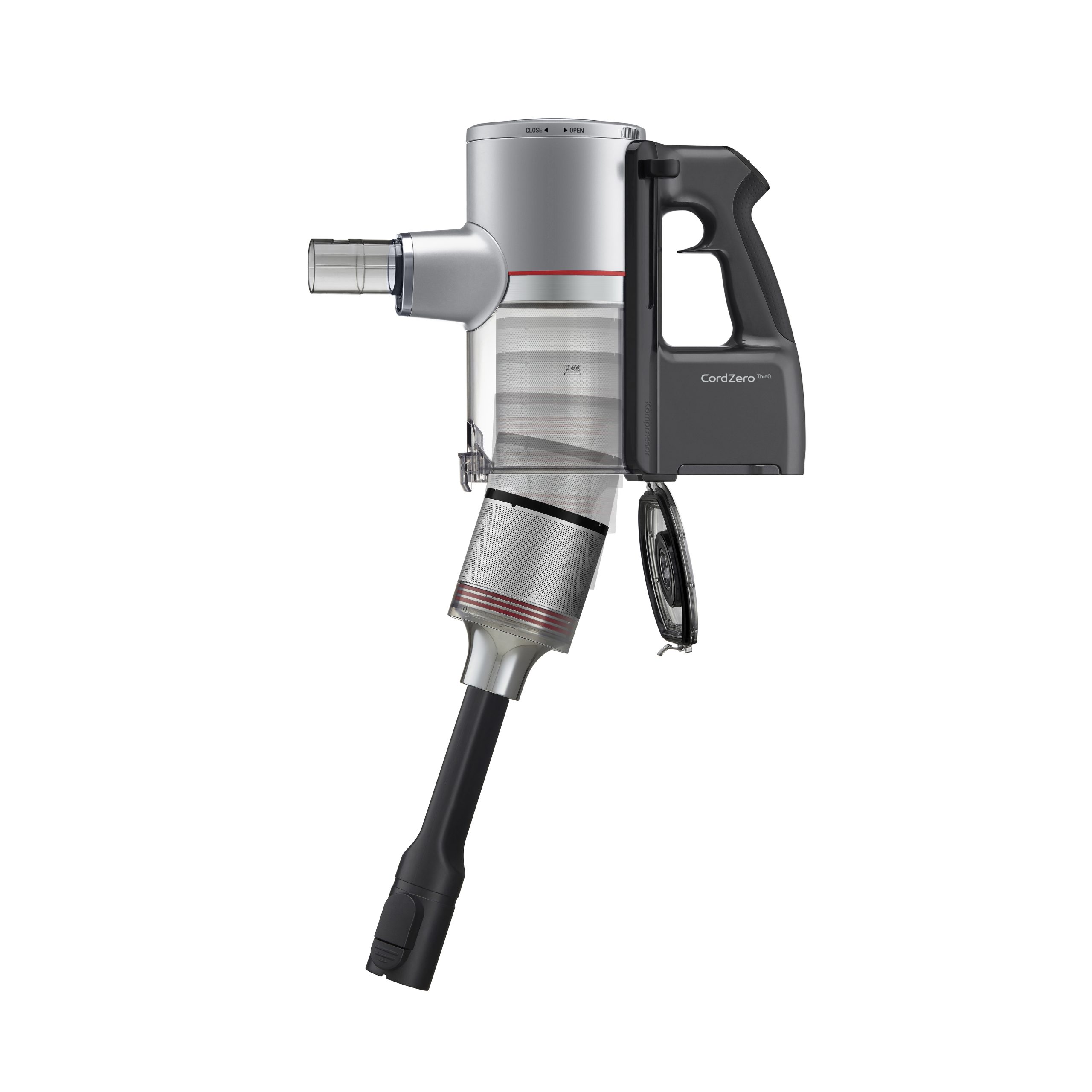 Con la tecnologia LG Kompressor™, comprimi la polvere e lo sporco raccolto per aumentare la capacità del contenitore e ridurre la frequenza del suo svuotamento.