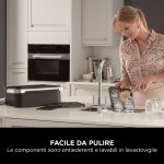 AIR FRY super croccantezza aggiungendo poco o zero olio: fino al 75% di grassi in meno rispetto ai metodi di frittura tradizionali**. Perfetta per preparare qualsiasi cosa, dalle zeppole fatte in casa, a croccanti sfilacci di pancetta, al salmone teriyaki con cimette di broccoli freschi, fino ai samosa, alle frittate e a panini dorati e tostati.