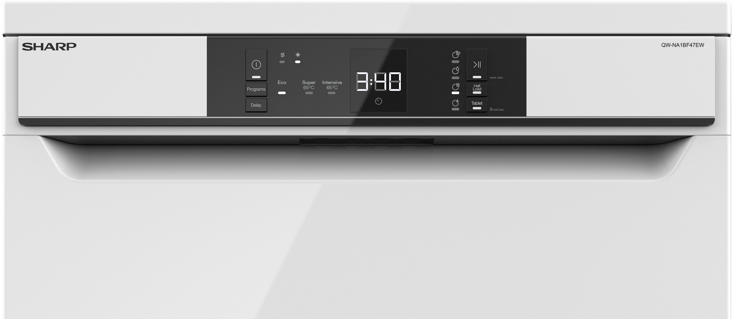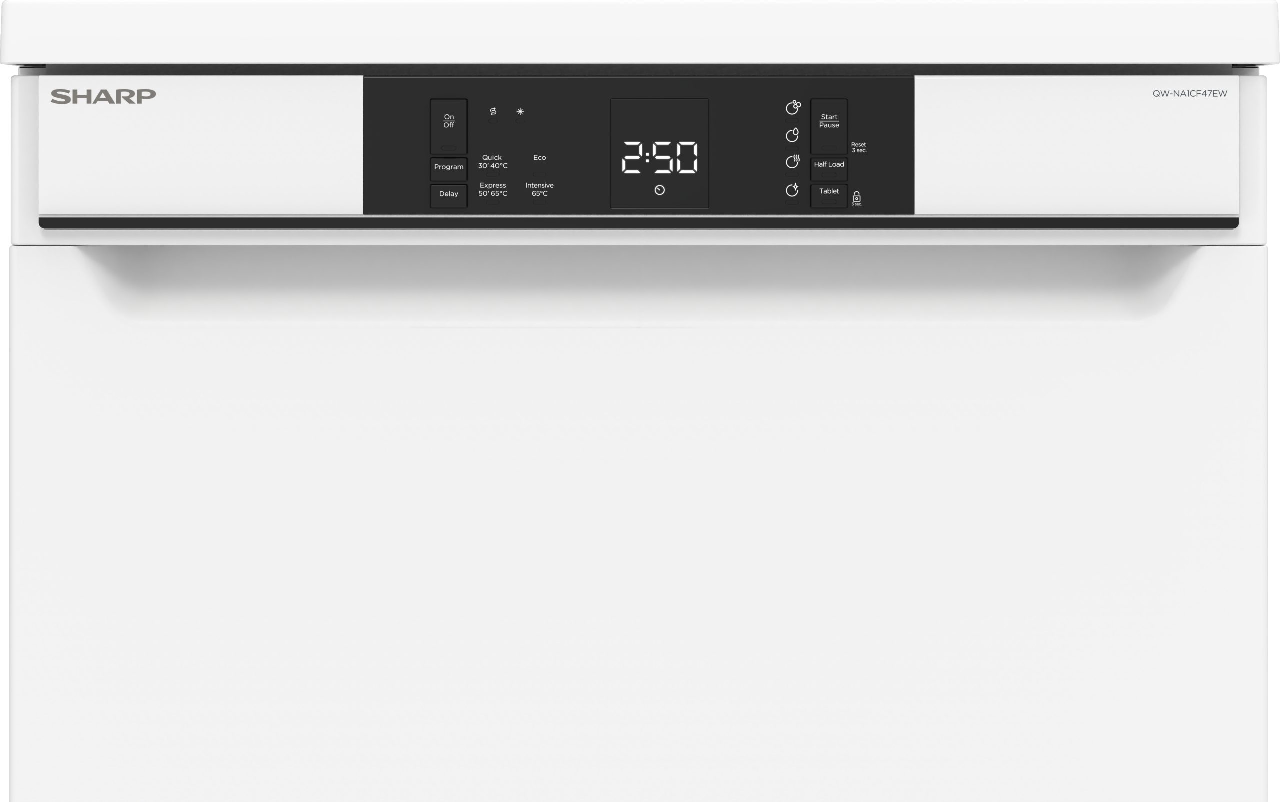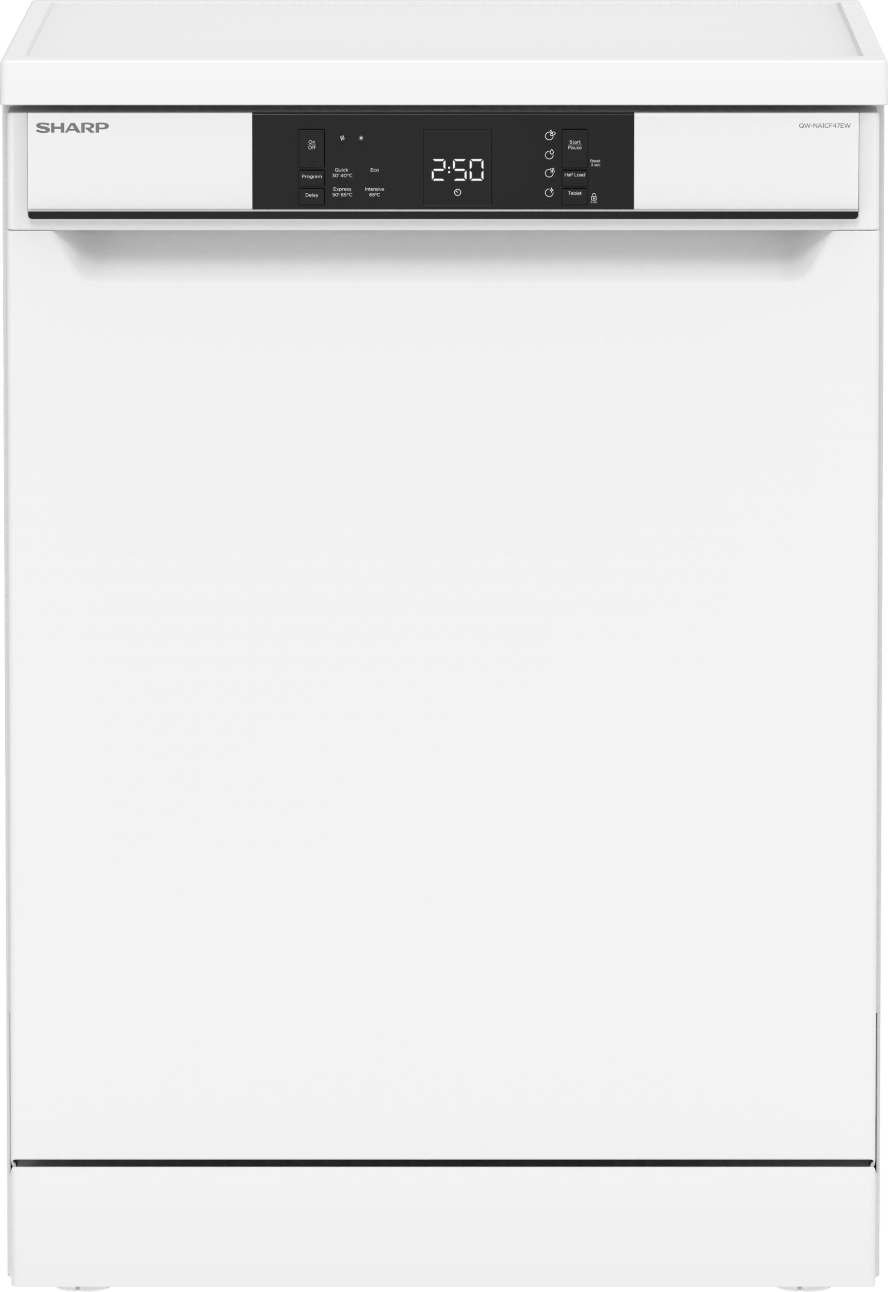 Sharp QW-NA1CF47EW. Posizionamento dell’apparecchio: Libera installazione, Dimensione: Dimensione massima (60 cm), Colore della porta: Bianco. Numero di coperti: 13 coperti, Classe emissione rumore: C, Emissione acustica: 47 dB. Regolazione piedini: 5 cm, Colore retroilluminazione: Bianco. Classe efficienza energetica: E, Consumo di acqua per ciclo: 12 L, Consumo energetico per 100 cicli: 94 kWh. Larghezza: 598 mm, Profondità: 598 mm, Altezza: 850 mm