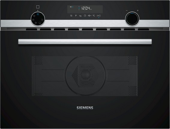 Siemens iQ500 CM585AGS0. Dimensione del forno: Piccola, Tipo di forno: Forno elettrico, Capacità interna forno totale: 44 L. Colore del prodotto: Nero, Acciaio inox, Tipo di controllo: Pulsanti, Manopola, Materiale interno: Acciaio inox. Tipo di orologio: Elettronico, Tipo di timer: Digitale. Carico di collegamento: 3350 W, Tensione di ingresso AC: 220 – 230 V, Frequenza di ingresso AC: 50 Hz. Tipo di lampada: LED