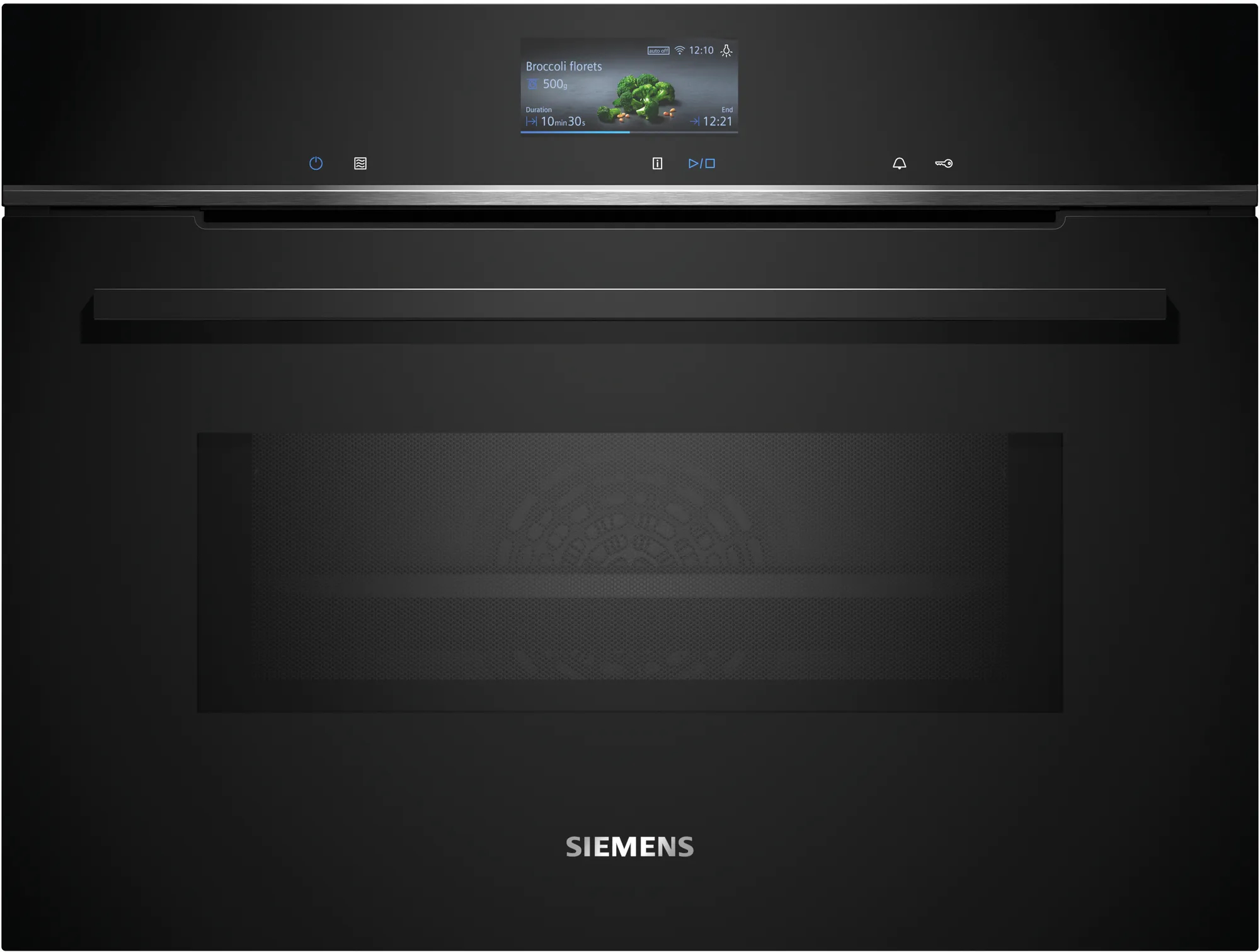 Siemens iQ700 CM776G1B1. Dimensione del forno: Media, Tipo di forno: Forno elettrico, Capacità interna forno totale: 45 L. Posizionamento dell’apparecchio: Da incasso, Colore del prodotto: Nero, Tipo di controllo: Touch. Tipo di orologio: Elettronico, Applicazioni per il controllo supportate: Home Connect. Carico di collegamento: 3600 W, Tensione di ingresso AC: 220 – 240 V, Frequenza di ingresso AC: 50 – 60 Hz. Quantità lampade: 1 lampada(e), Tipo di lampada: LED