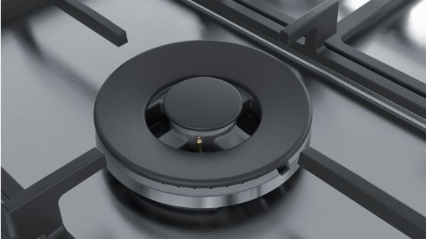 Piano a cottura gas con stepFlame Technology per un controllo preciso della fiamma tramite 9 livelli di potenza