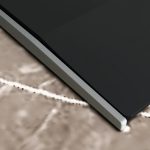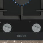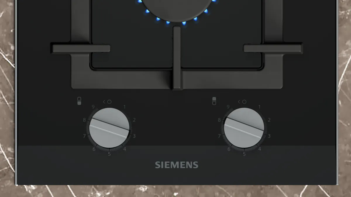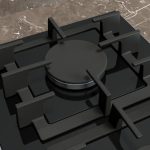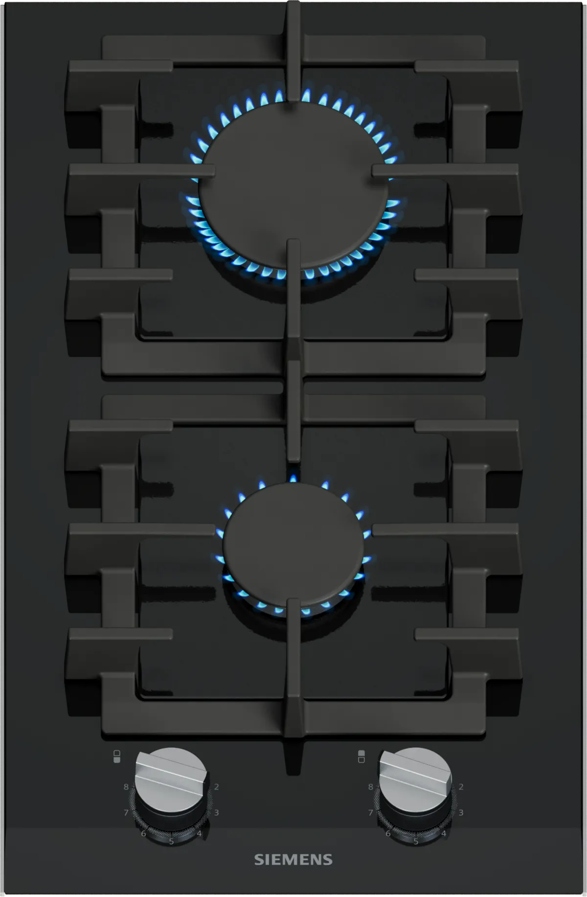 Piano cottura a gas domino in vetroceramica con tecnologia stepFlame per un controllo preciso della fiamma, manopole magnetiche removibili e griglie lavabili in lavastoviglie.