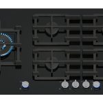 Piano cottura a gas in vetro temperato con tecnologia stepFlame per un controllo preciso della fiamma, controllo
