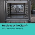 Puoi dire addio a spugne e prodotti per la pulizia del forno. Grazie alla funzione activeClean®, il tuo forno ora si pulisce da solo. Basta rimuovere ogni residuo e il forno fa il resto. Al semplice tocco di un pulsante, tutti i depositi di cottura, arrosti e grigliate vengono ridotti in cenere dall’alta temperatura. Passa un panno umido per pulire le superfici e il gioco è fatto.