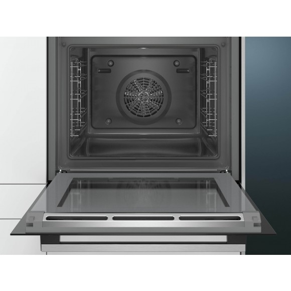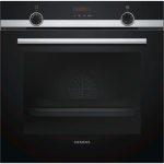 Siemens iQ300 HB573ABR0. Dimensione del forno: Media, Tipo di forno: Forno elettrico, Capacità interna forno totale: 71 L. Posizionamento dell’apparecchio: Da incasso, Colore del prodotto: Nero, Acciaio inox, Tipo di controllo: Manopola. Tipo di orologio: Elettronico. Consumo energetico (convenzionale): 0,99 kWh, Consumo energetico (convezione forzata): 0,81 kWh, Carico di collegamento: 3600 W. Tipo di lampada: Alogena