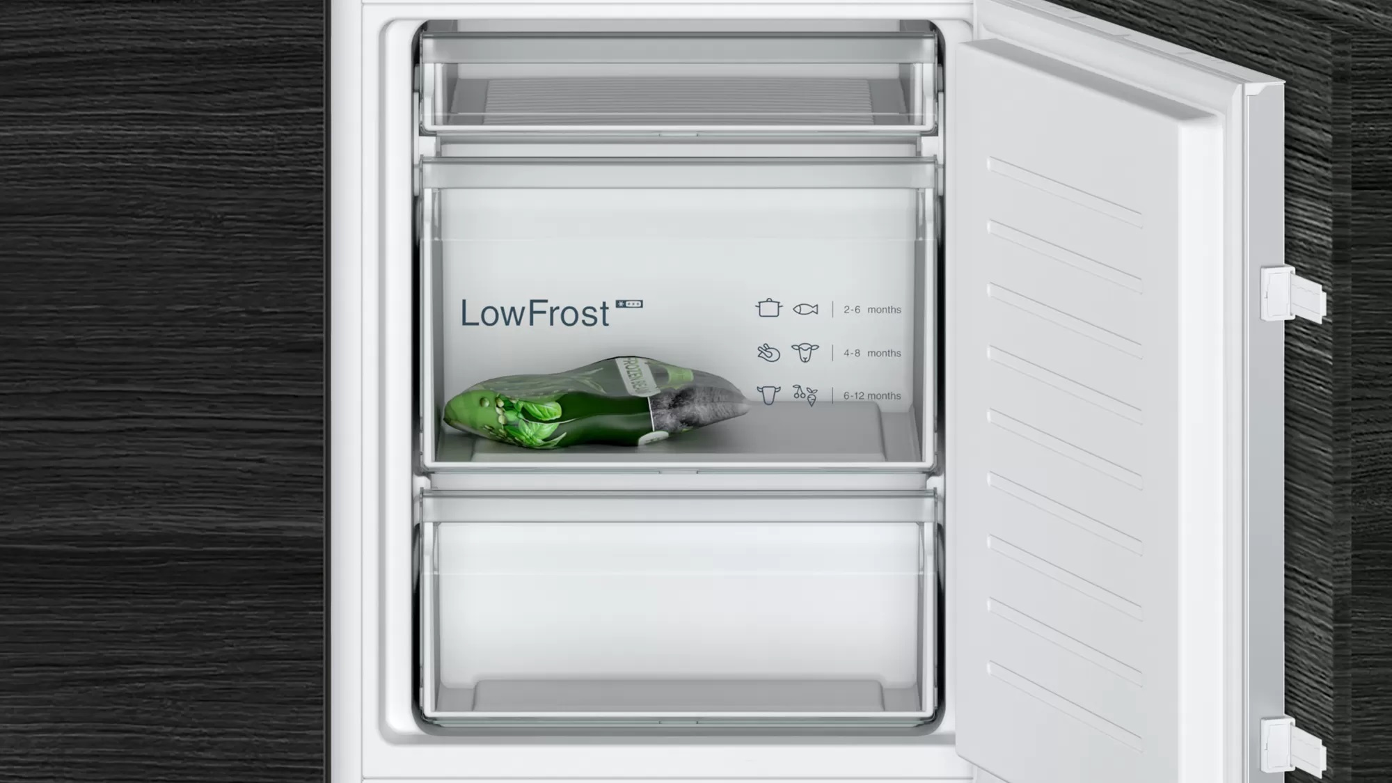 Siemens iQ300 KI86VVSE0. Capacità netta totale: 267 L. Cerniera porta: Destra, Tipo di display: LED. Classe climatica: SN-ST, Emissione acustica: 35 dB. Capacità netta frigorifero: 183 L, Luce interna, Numero di ripiani frigorifero: 4, Numero di cassetti per verdura: 1. Capacità netta congelatore: 84 L, Capacità di congelamento: 4,2 kg/24h. Classe efficienza energetica: E, Consumo energetico annuo: 229 kWh