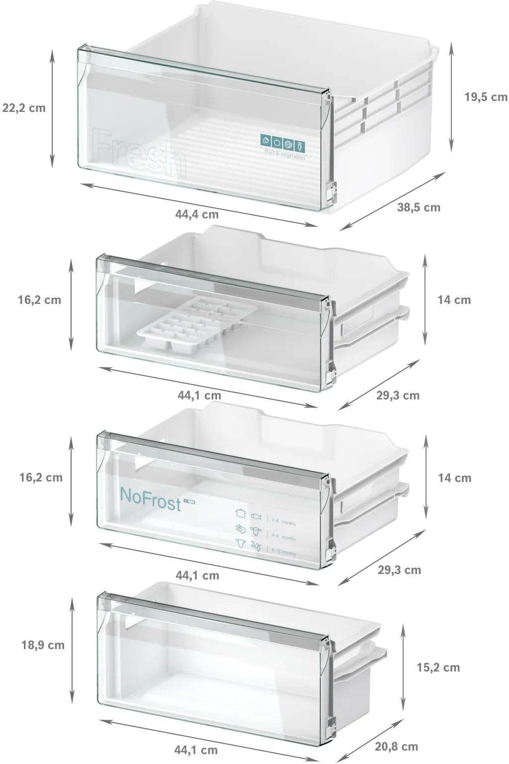 | Numero di cassetti per verdura | 1 | 1 | 2 |