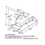 Siemens iQ300 LI97SA531. Potenza massima di estrazione: 397 m³/h, Tipo di estrazione: Filtrante, Classe di efficienza dinamica del fluido: B. Tipo: Semintegrato (semincassato), Colore del prodotto: Bianco, Lunghezza cavo: 1,75 m. Tipo di filtro antigrasso: Metallo. Tipo di Lampadina: LED, Efficienza luminosa (LE): 65,7 lux/W. Classe efficienza energetica: A, Consumo energetico annuo: 38,1 kWh, Carico di collegamento: 146 W