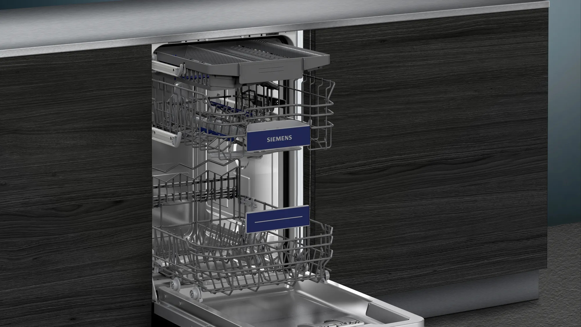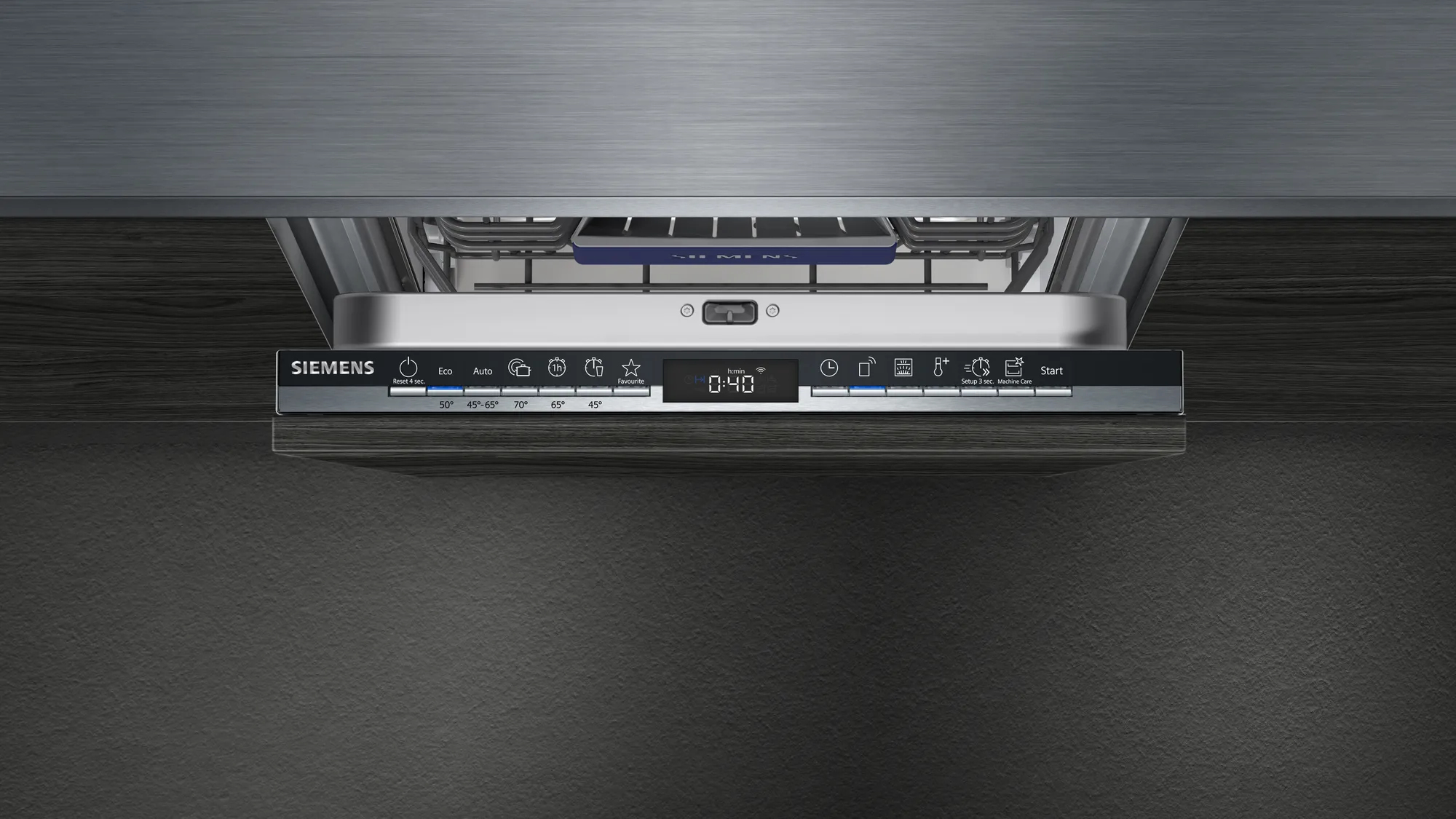 Siemens iQ300 SR73EX24ME. Posizionamento dell’apparecchio: A scomparsa totale, Dimensione: Compatta (45 cm), Colore pannello di controllo: Nero. Numero di coperti: 10 coperti, Classe emissione rumore: B, Emissione acustica: 44 dB. Classe efficienza energetica: C, Consumo di acqua per ciclo: 8,9 L, Consumo energetico per 100 cicli: 59 kWh. Larghezza: 448 mm, Profondità: 550 mm, Altezza: 815 mm