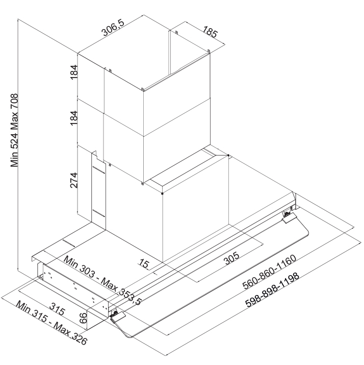 | Larghezza (mm) | 600 | 520 | 898 |