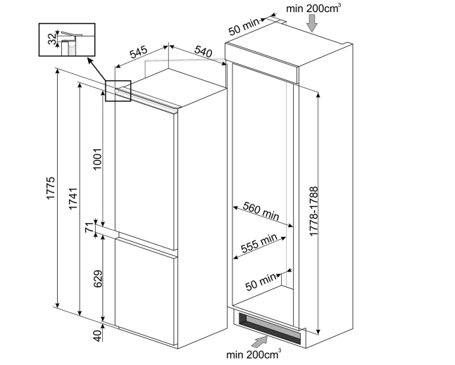 | Capacità netta frigorifero (L) | |