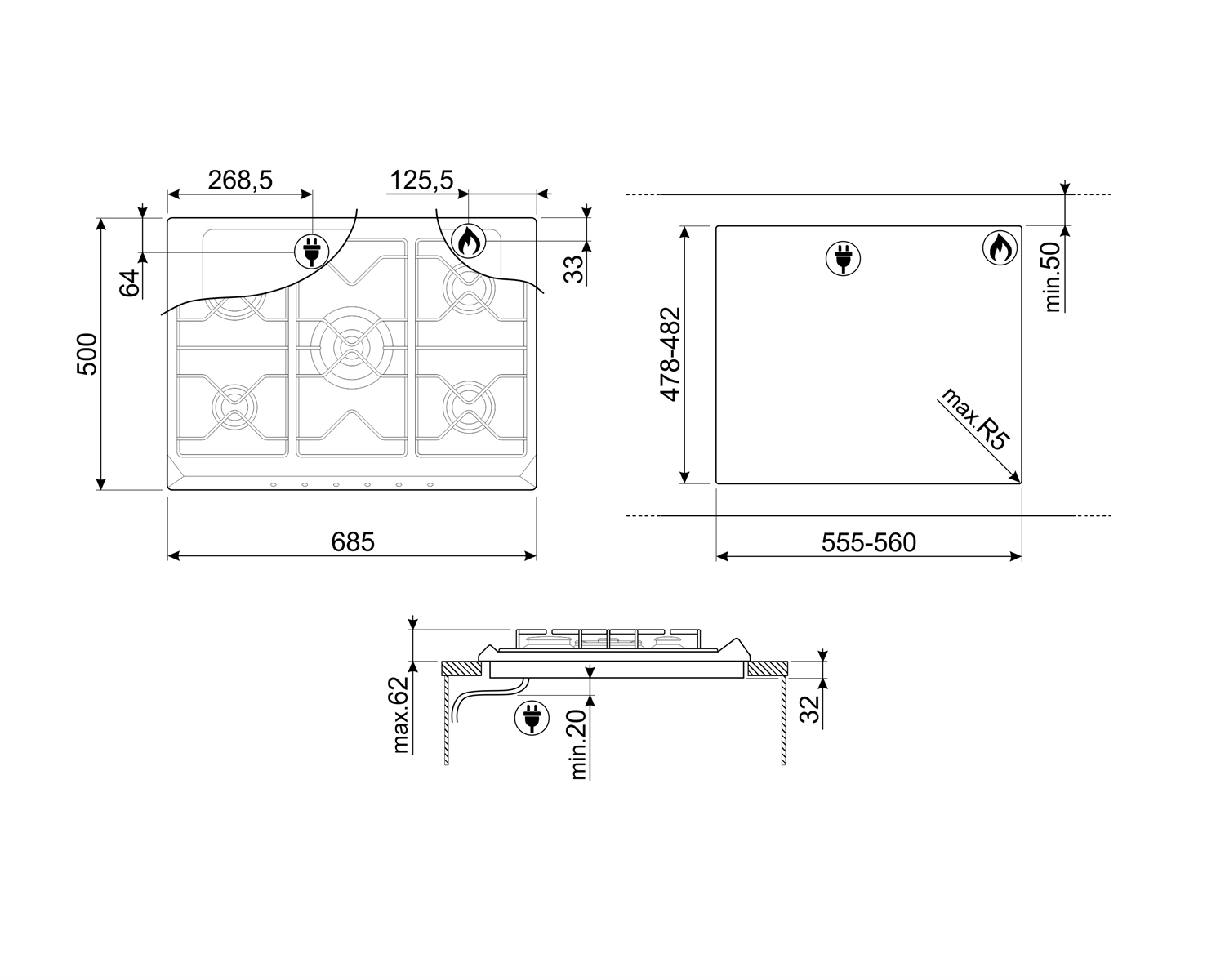 | Numero di fuochi (Fornello(i)) | 5 | 5 | 5 |