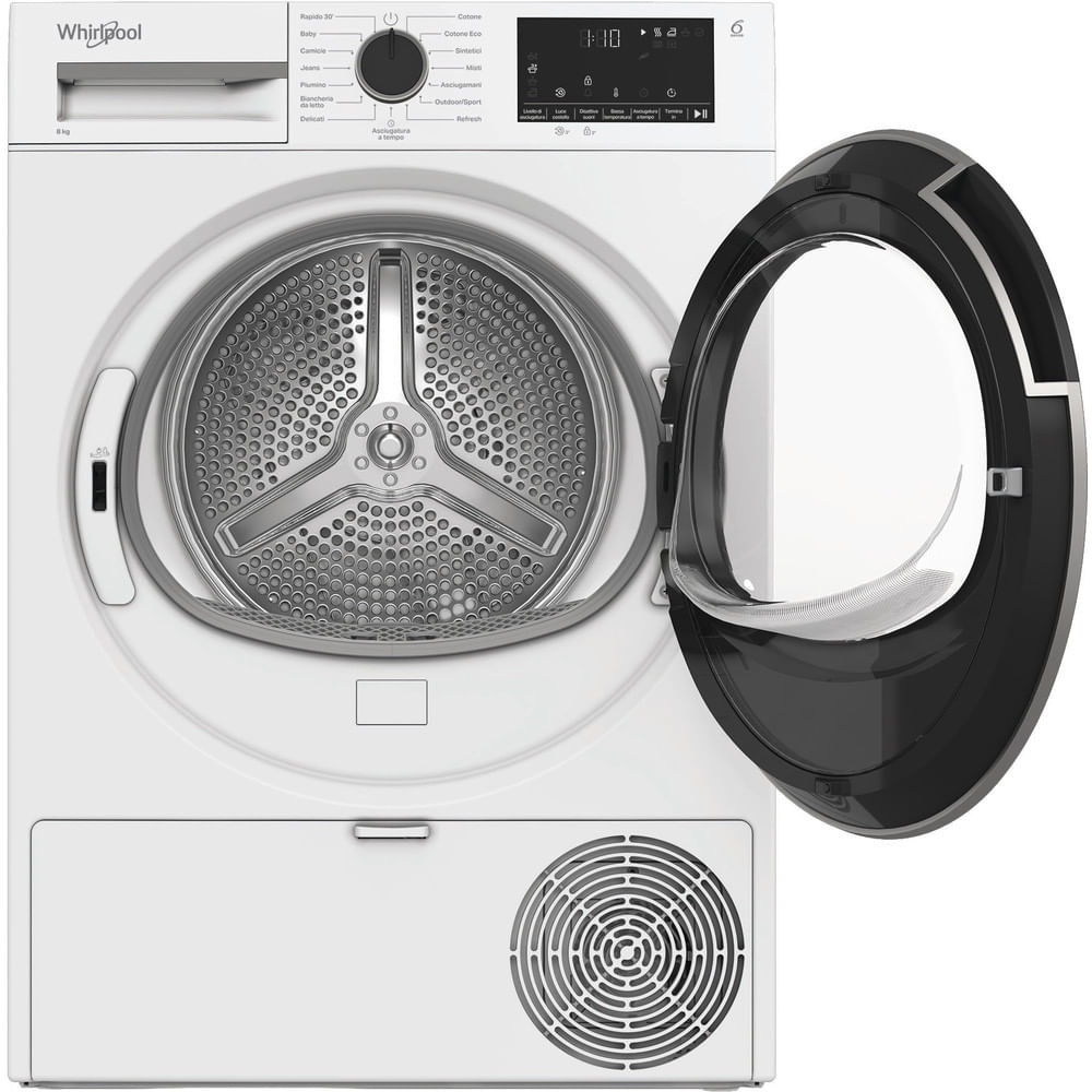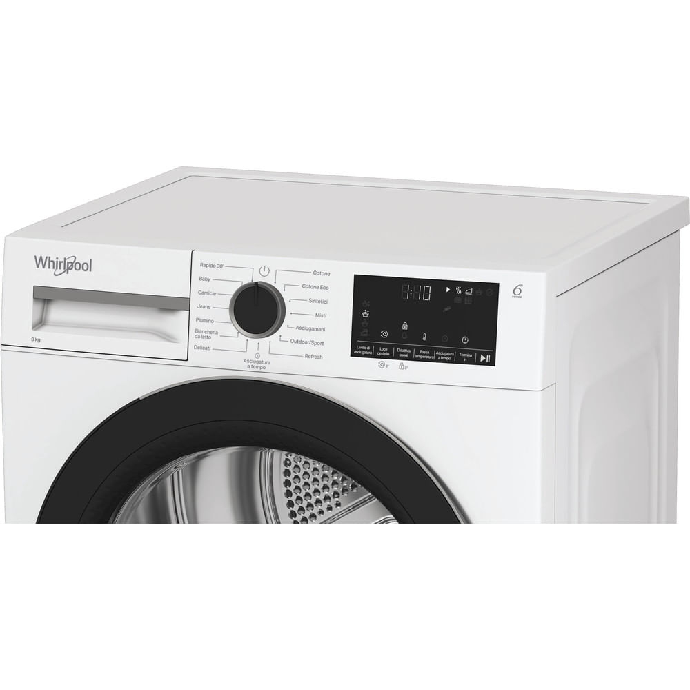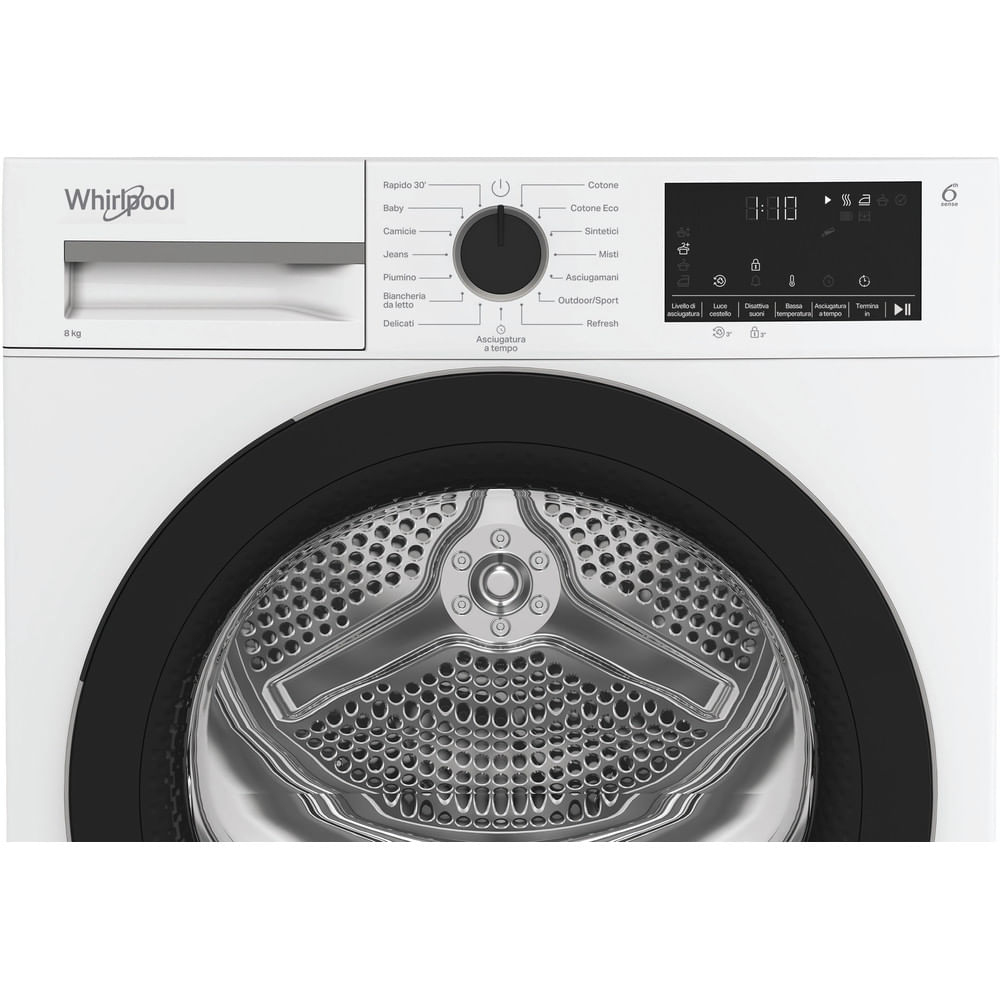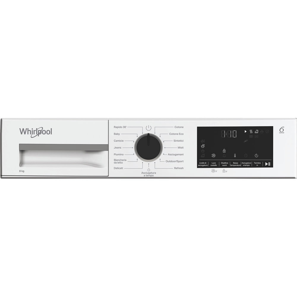 Caratteristiche di questa asciugatrice a libera installazione Whirlpool: cestello spazioso da 8,0 kg. Esclusiva tecnologia 6° SENSO che monitora costantemente il livello di umidità nel tamburo per proteggere i tuoi vestiti e garantire un’asciugatura perfetta. Tecnologia a pompa di calore riscalda efficacemente l’aria nell’elettrodomestico, riducendo significativamente il consumo energetico.