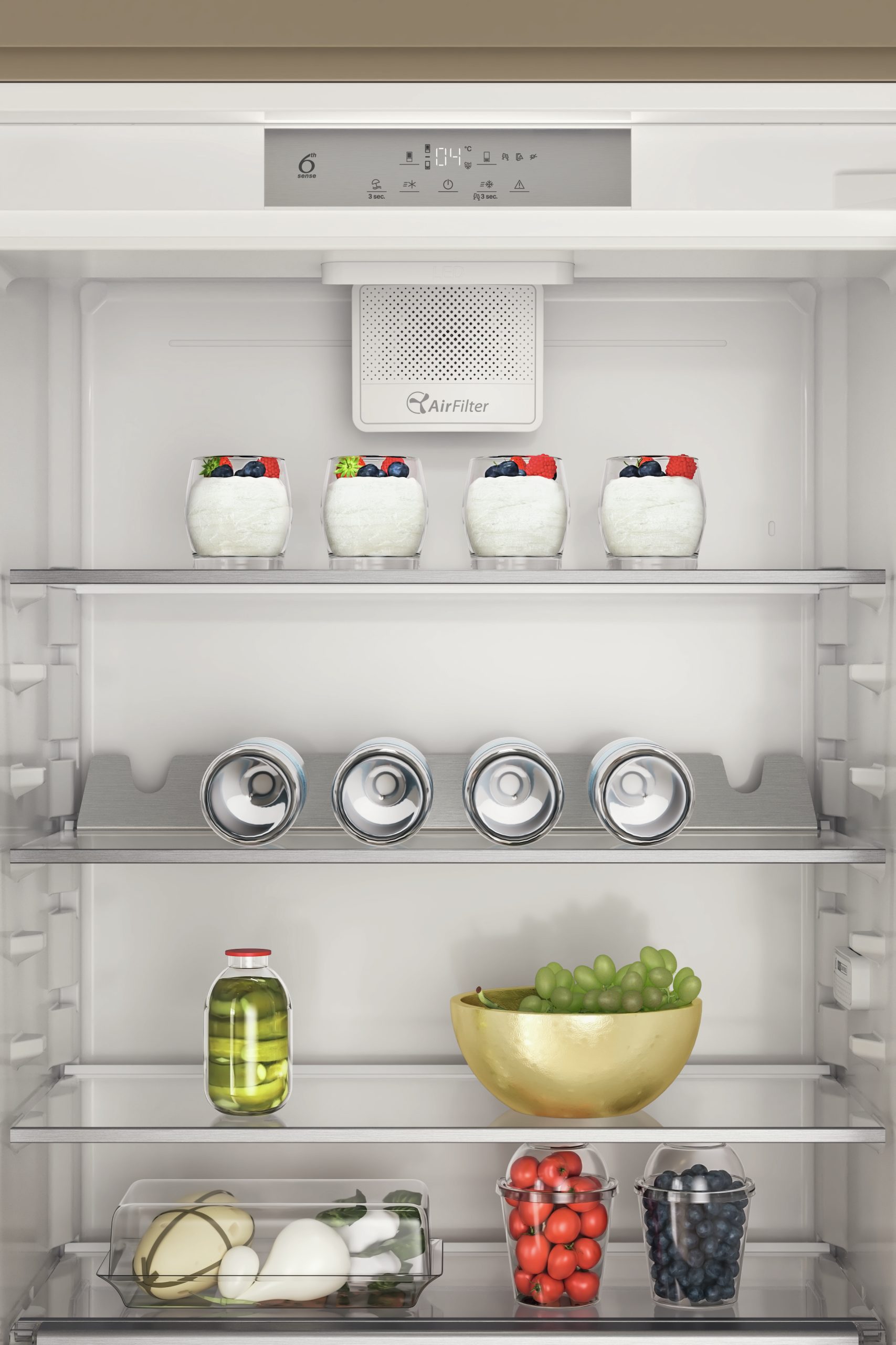 Gli speciali sensori 6° SENSO FreshControl controllano costantemente la temperatura e il livello di umidità in tutta la cavità del frigorifero per mantenere i cibi freschi più a lungo.