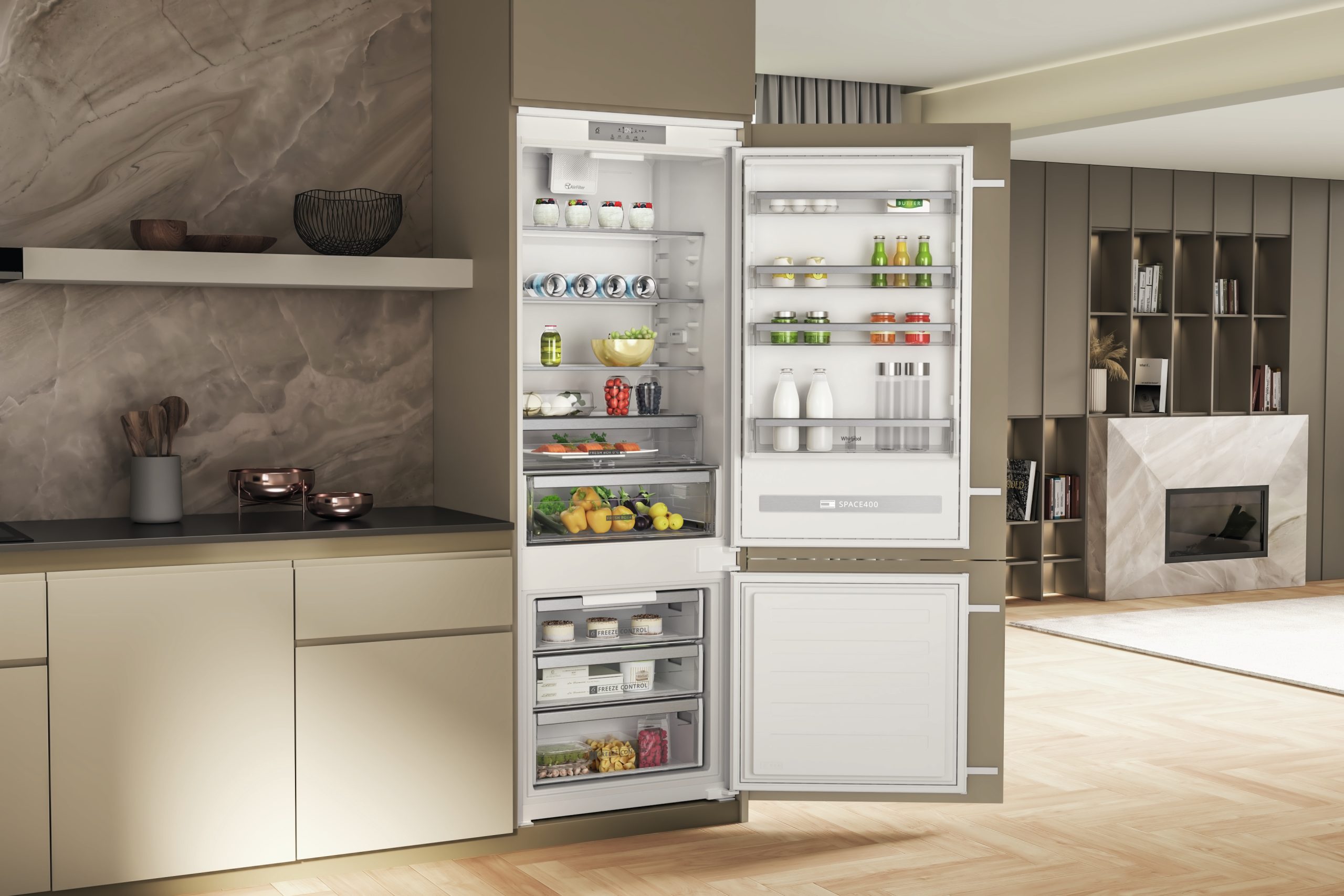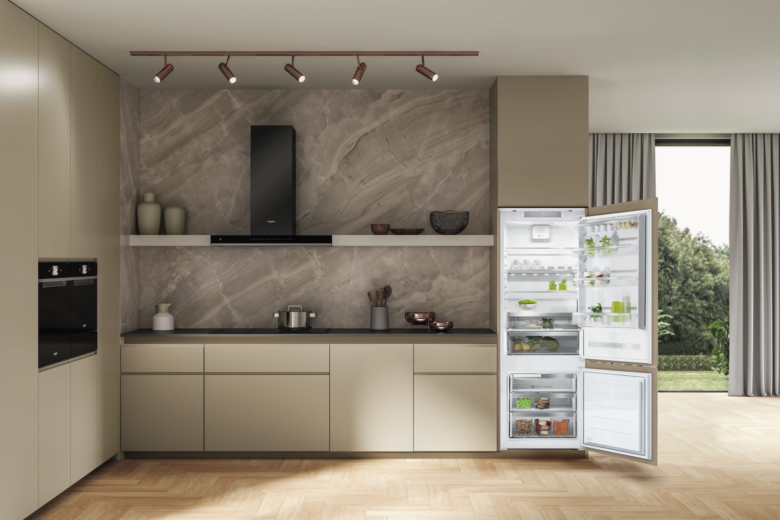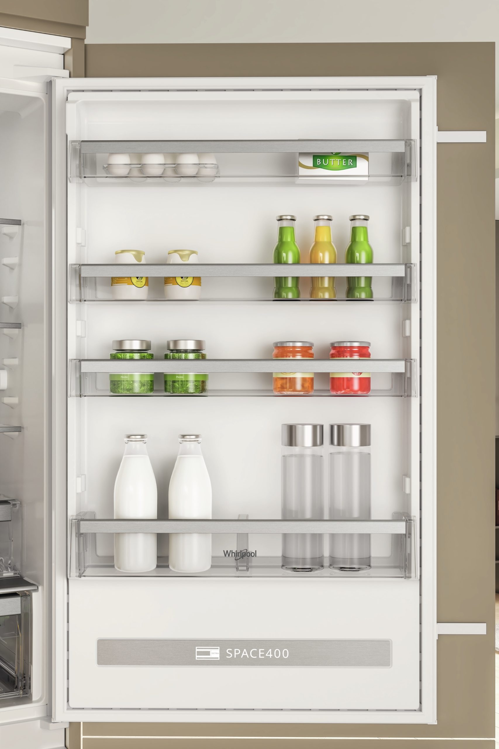 Questo frigorifero Whirlpool è dotato di ripiani in vetro pensati per abbinare estetica e funzionalità.
