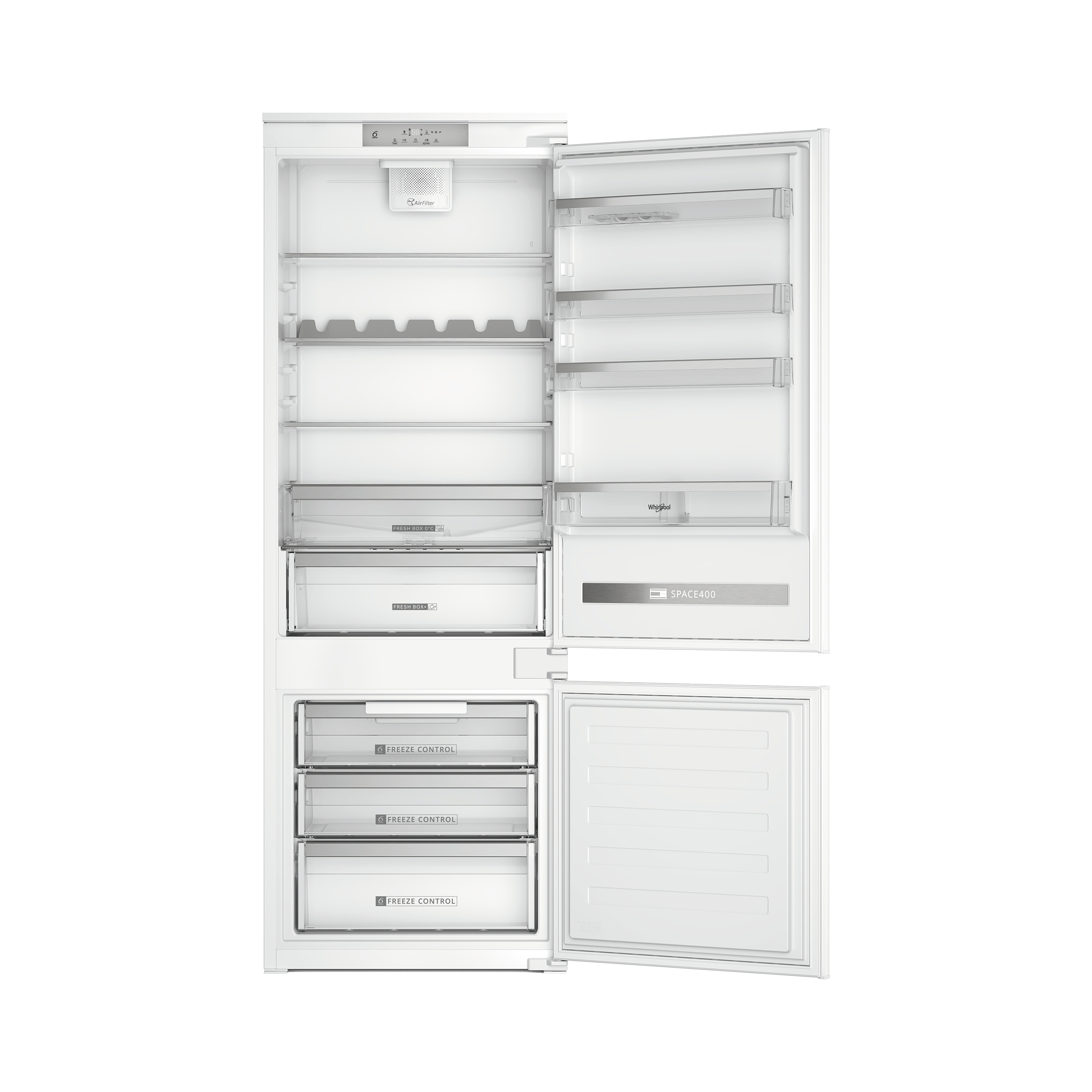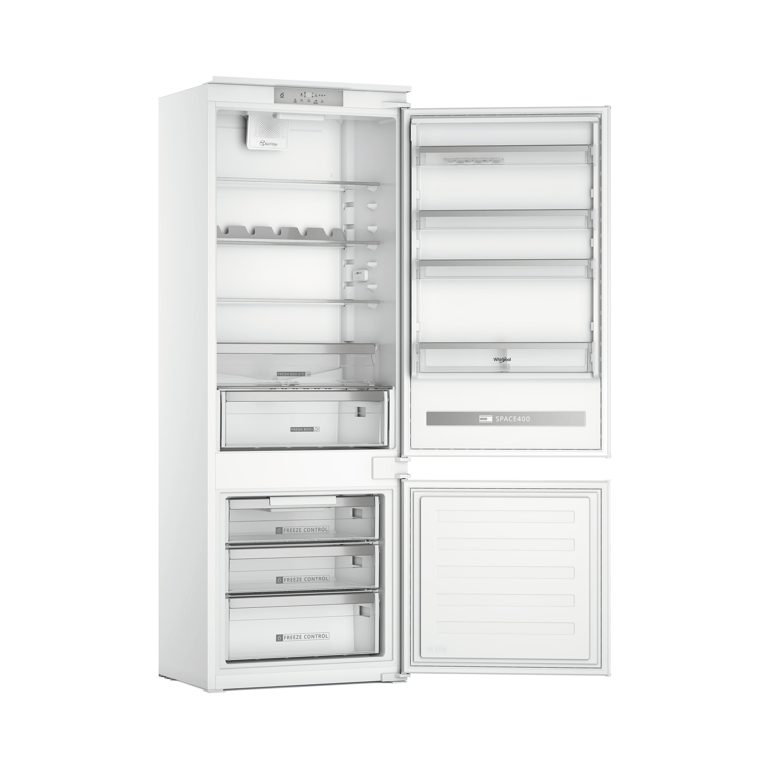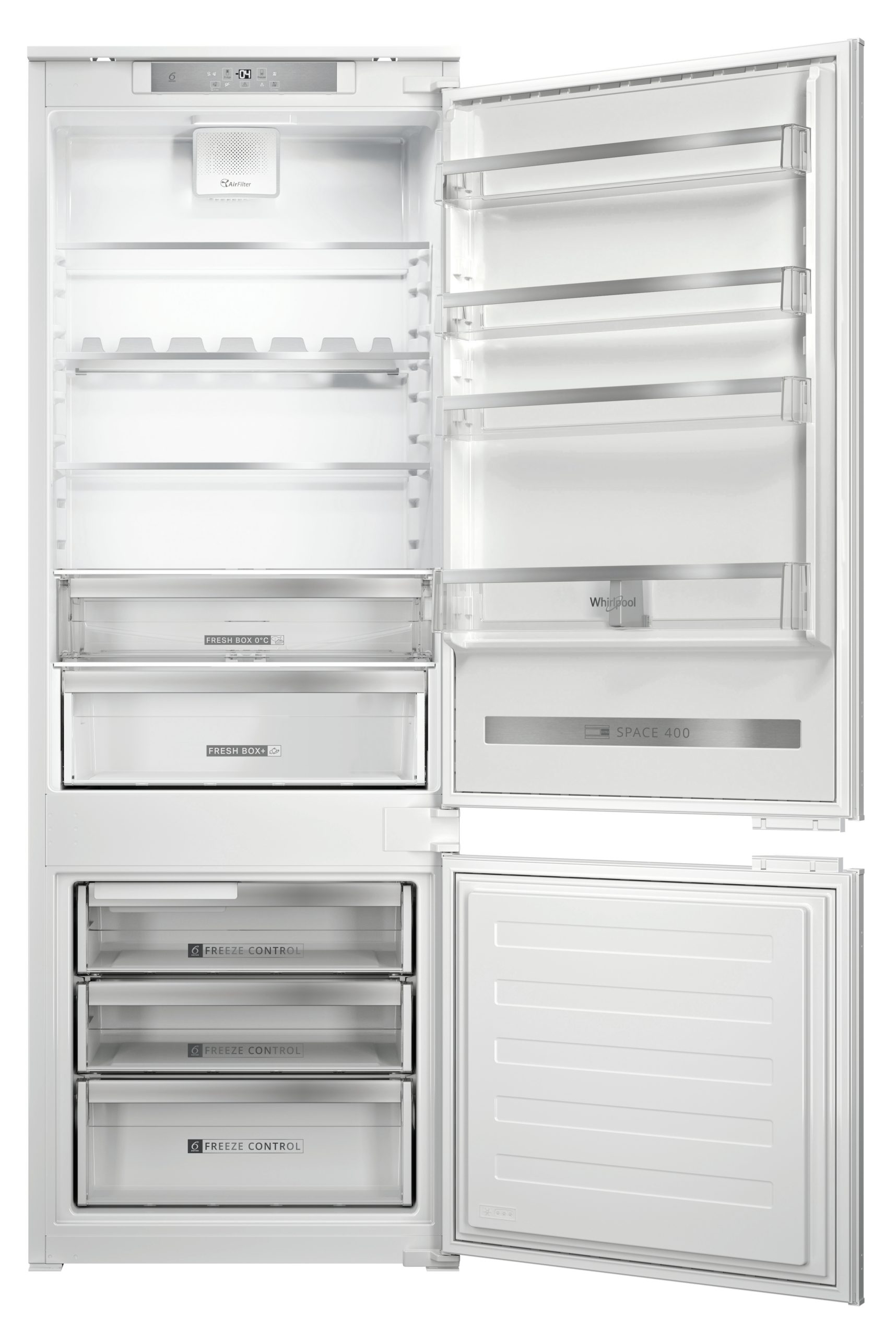 Caratteristiche di questo frigorifero combinato da incasso Whirlpool: colore bianco. Modello alto e capiente, adatto per le esigenze di tutta la famiglia. Ripiani in vetro, robusti ed eleganti al tempo stesso. Flusso d’aria regolare e uniforme all’interno dell’elettrodomestico, per una ventilazione potenziata. Esclusiva tecnologia 6° SENSO FreshControl, che regola automaticamente i livelli di temperatura e umidità, assicurando freschezza a lungo.