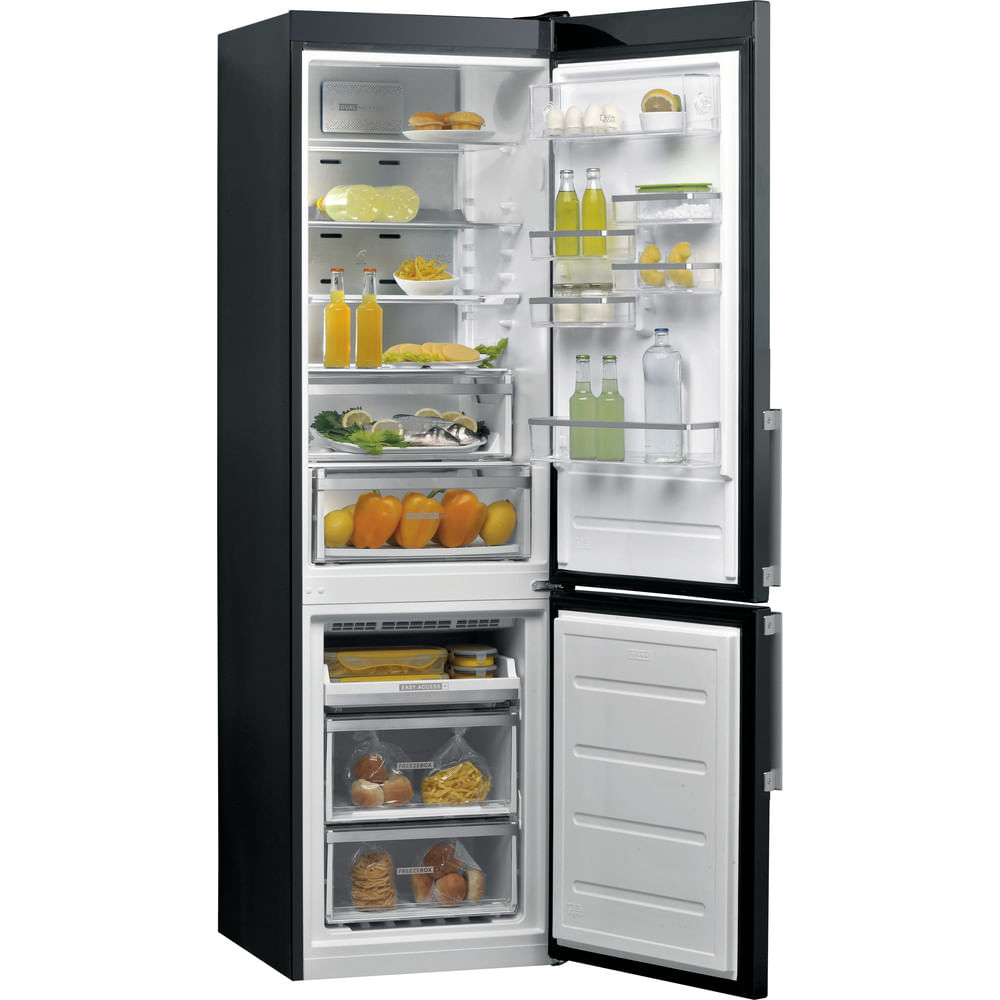 Caratteristiche di questo frigorifero combinato a libera installazione Whirlpool: colore nero. No Frost, la tecnologia che previene efficacemente la formazione di ghiaccio nel congelatore riducendo i livelli di umidità. Modello alto e capiente, adatto per le esigenze di tutta la famiglia. Ripiani in vetro, robusti ed eleganti al tempo stesso. Flusso d’aria regolare e uniforme all’interno dell’elettrodomestico, per una ventilazione potenziata.