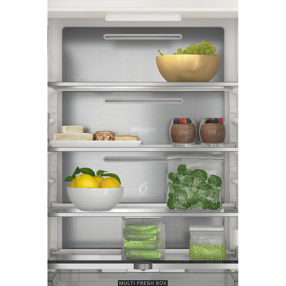 Caratteristiche di questo frigorifero combinato da incasso Whirlpool: colore bianco. Ripiani in vetro, robusti ed eleganti al tempo stesso. Flusso d’aria regolare e uniforme all’interno dell’elettrodomestico, per una ventilazione potenziata. Sensori 6° SENSO che abbassano automaticamente la temperatura all’interno dell’elettrodomestico quando vengono introdotti nuovi alimenti, riducendo così il consumo di energia elettrica. Comodo porta-bottiglie per conservare le bottiglie con sicurezza.