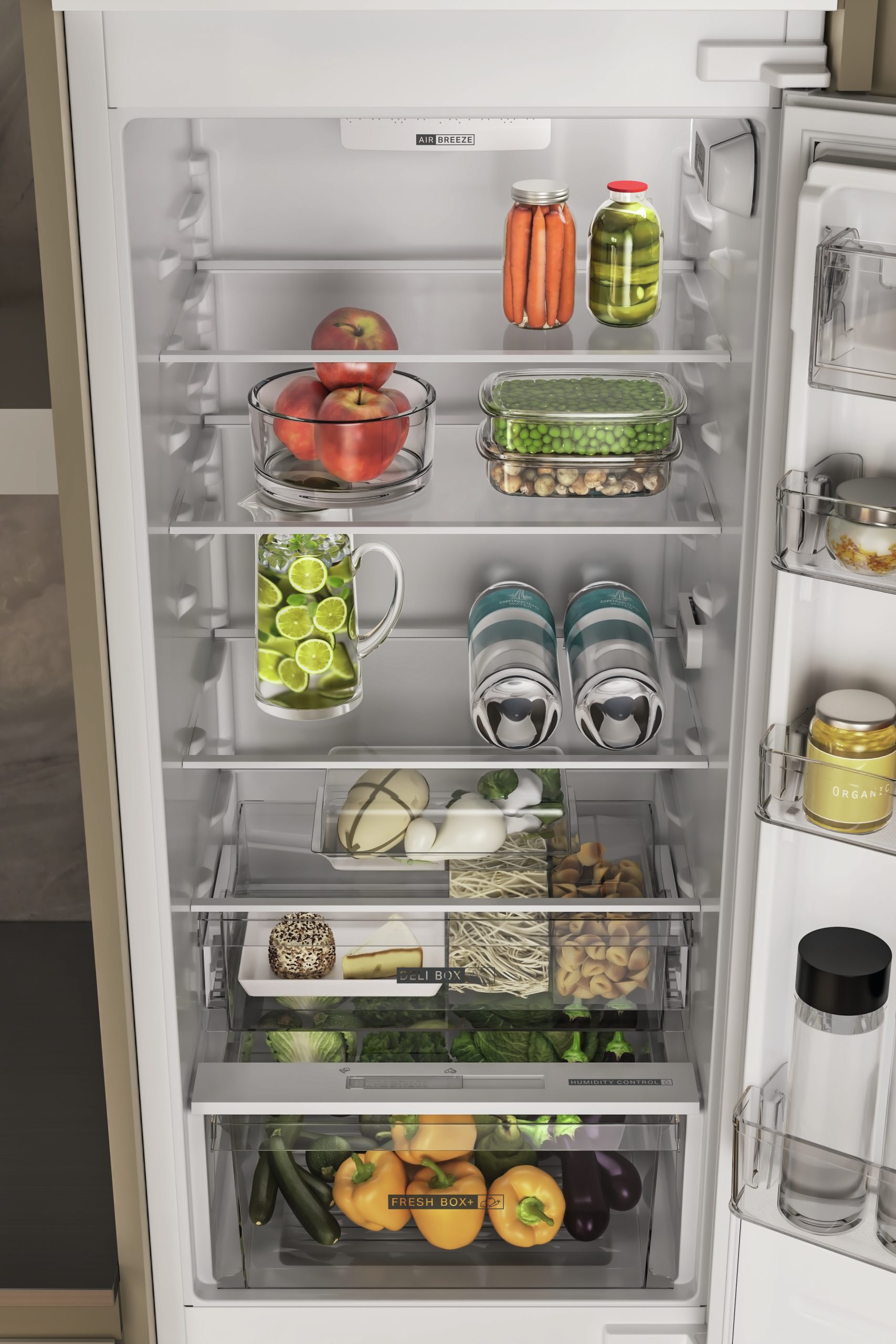 Un cassetto con un cursore per il controllo dell’umidità integrato che consente di conservare frutta e verdura fresche fino a 15 giorni*. *Basato sulla perdita di peso e aspetto visivo considerando frutta e verdura comuni. Procedura di prova interna.