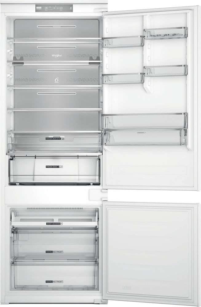 Caratteristiche di questo frigorifero combinato da incasso Whirlpool: colore bianco. Modello alto e capiente, adatto per le esigenze di tutta la famiglia. Ripiani in vetro, robusti ed eleganti al tempo stesso. Flusso d’aria regolare e uniforme all’interno dell’elettrodomestico, per una ventilazione potenziata. Sensori 6° SENSO che abbassano automaticamente la temperatura all’interno dell’elettrodomestico quando vengono introdotti nuovi alimenti, riducendo così il consumo di energia elettrica.