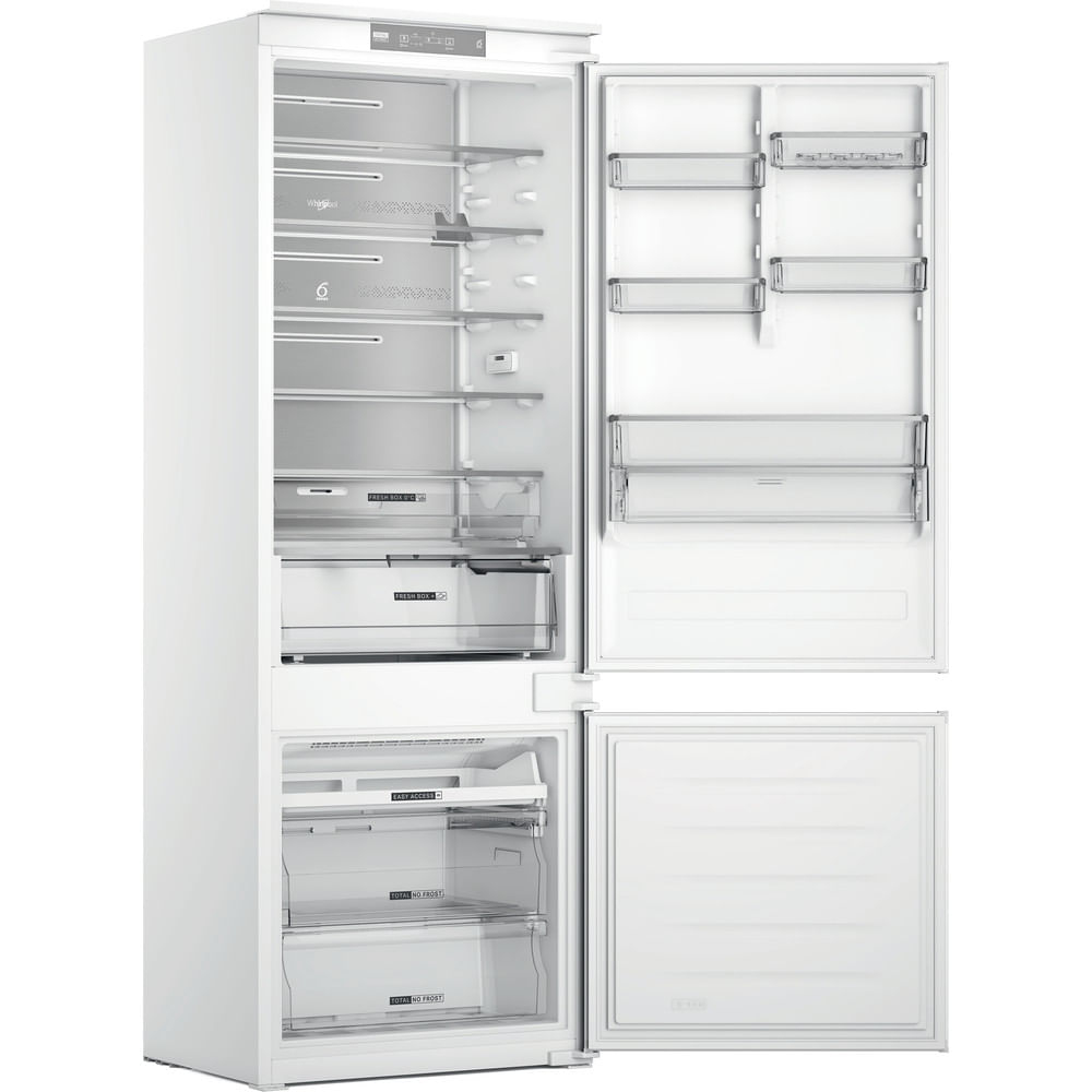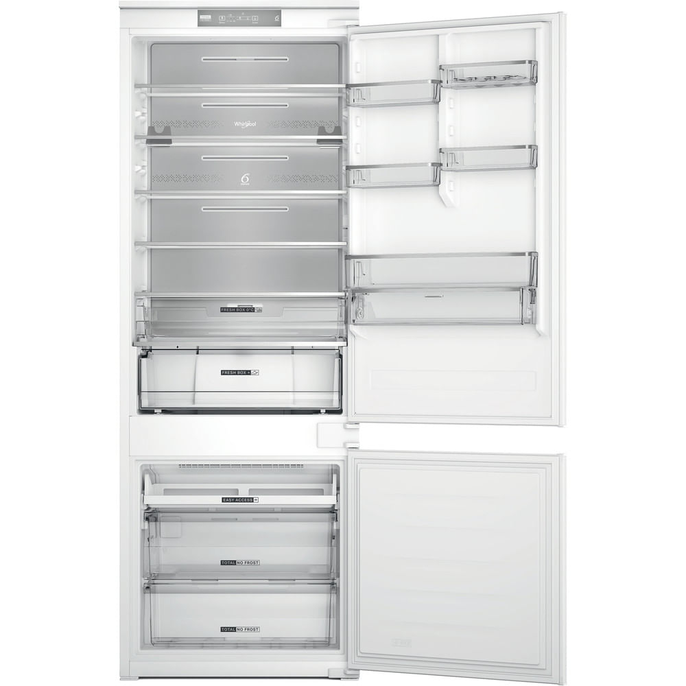 Caratteristiche di questo frigorifero combinato da incasso Whirlpool: colore bianco. Modello alto e capiente, adatto per le esigenze di tutta la famiglia. Ripiani in vetro, robusti ed eleganti al tempo stesso. Flusso d’aria regolare e uniforme all’interno dell’elettrodomestico, per una ventilazione potenziata. Sensori 6° SENSO che abbassano automaticamente la temperatura all’interno dell’elettrodomestico quando vengono introdotti nuovi alimenti, riducendo così il consumo di energia elettrica.