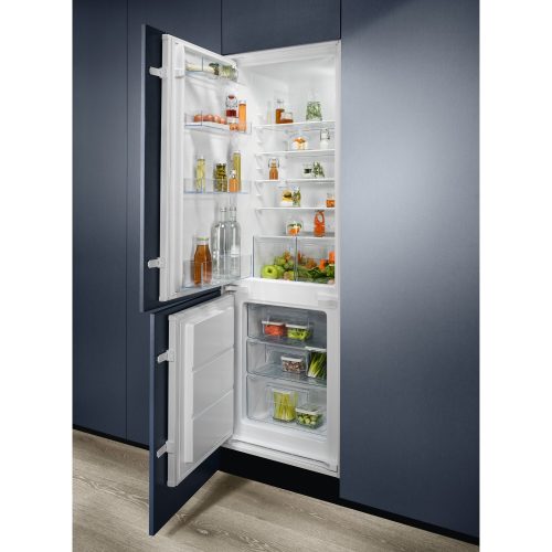 Electrolux KND5FE18S Frigocongelatore Serie 500 ColdSense 177,2 cm. Capacità netta totale: 269 L. Cerniera porta: Destra. Classe climatica: SN-T, Emissione acustica: 34 dB. Capacità netta frigorifero: 196 L, Luce interna, Numero di ripiani frigorifero: 5, Numero di cassetti per verdura: 2. Capacità netta congelatore: 73 L, Capacità di congelamento: 3,3…