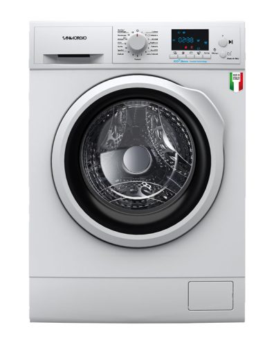 SanGiorgio SENS812D. Tipo di carica: Caricamento frontale. Capacità cestello: 8 kg, Classe di efficienza della centrifuga: B, Silenziosità (centrifuga): 79 dB, Silenziosità (lavaggio): 61 dB, Velocità di centrifuga massima: 1200 Giri/min. Colore del prodotto: Bianco. Larghezza: 595 mm, Profondità: 540 mm, Altezza: 850 mm. Classe efficienza energetica: C